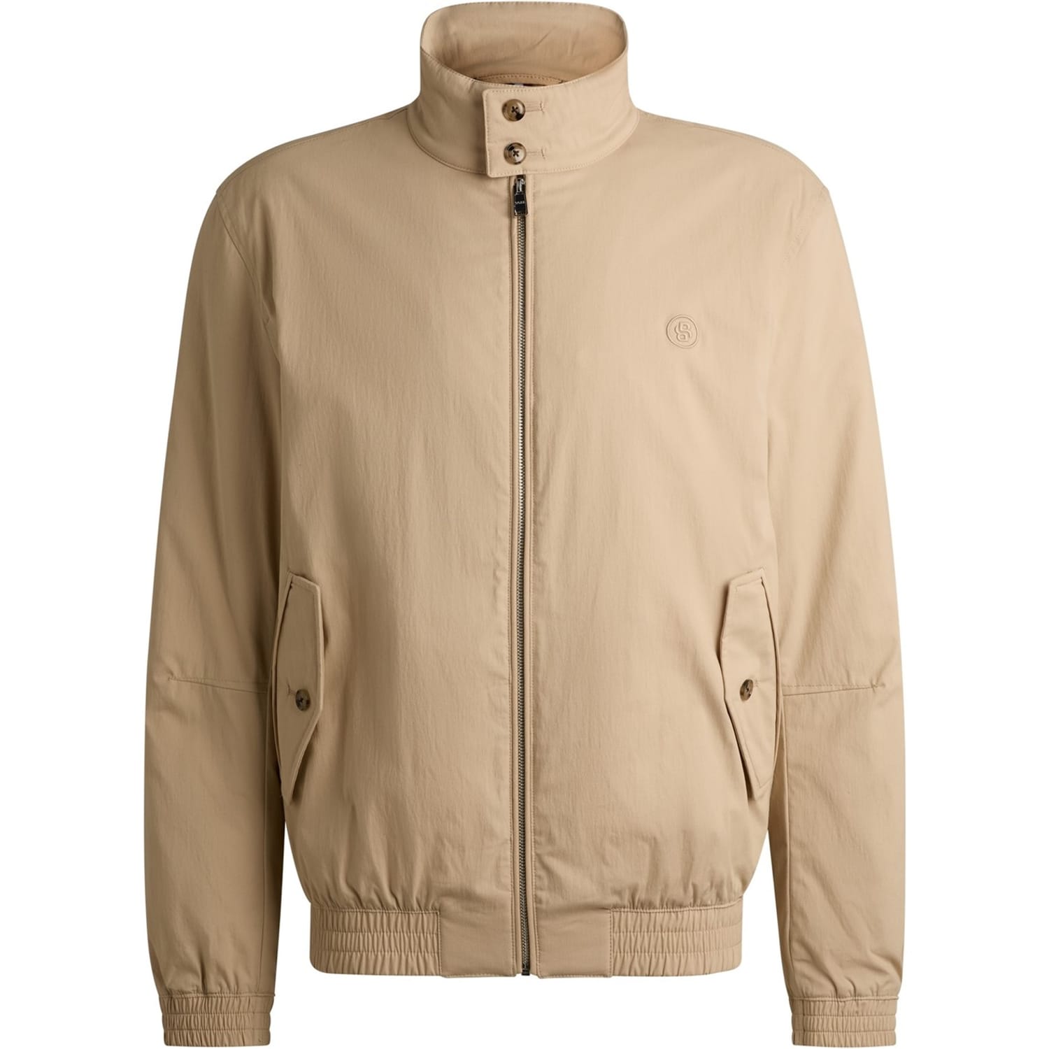 This Boss Harrington jacket from the Classics collection is a stylish addition to your wardrobe. Featuring a high collar and a regular fit, it offers a comfortable and timeless look. The jacket is designed with a solid pattern and includes a zipper closure with snap buttons. Ribbed cuffs and hem add a touch of detail, while the logo embellishment and pockets complete the design. -