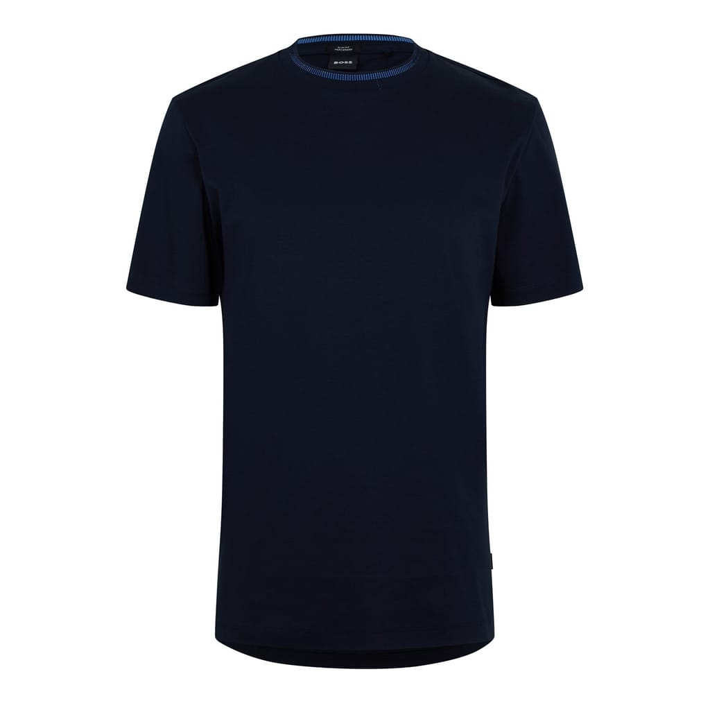 This Boss top is a staple for casual collections, featuring a regular fit and a classic crew neck. The solid pattern adds a timeless touch, while the logo embellishment subtly showcases brand identity. Ideal for those seeking a blend of comfort and style. -