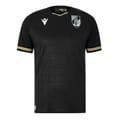 Unleash your athletic spirit with Macron's Vitoria Giumarars Away Shirt for the 2024 2025 season. This masterpiece boasts a captivating graphic pattern in a sleek tone-on-tone style, with contrasting stripes adding flair to the v-neckline and cuff, making it perfect for competitive matches, training sessions, or simply showcasing your bold style.