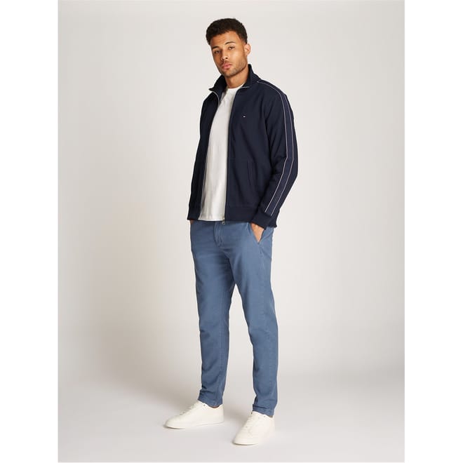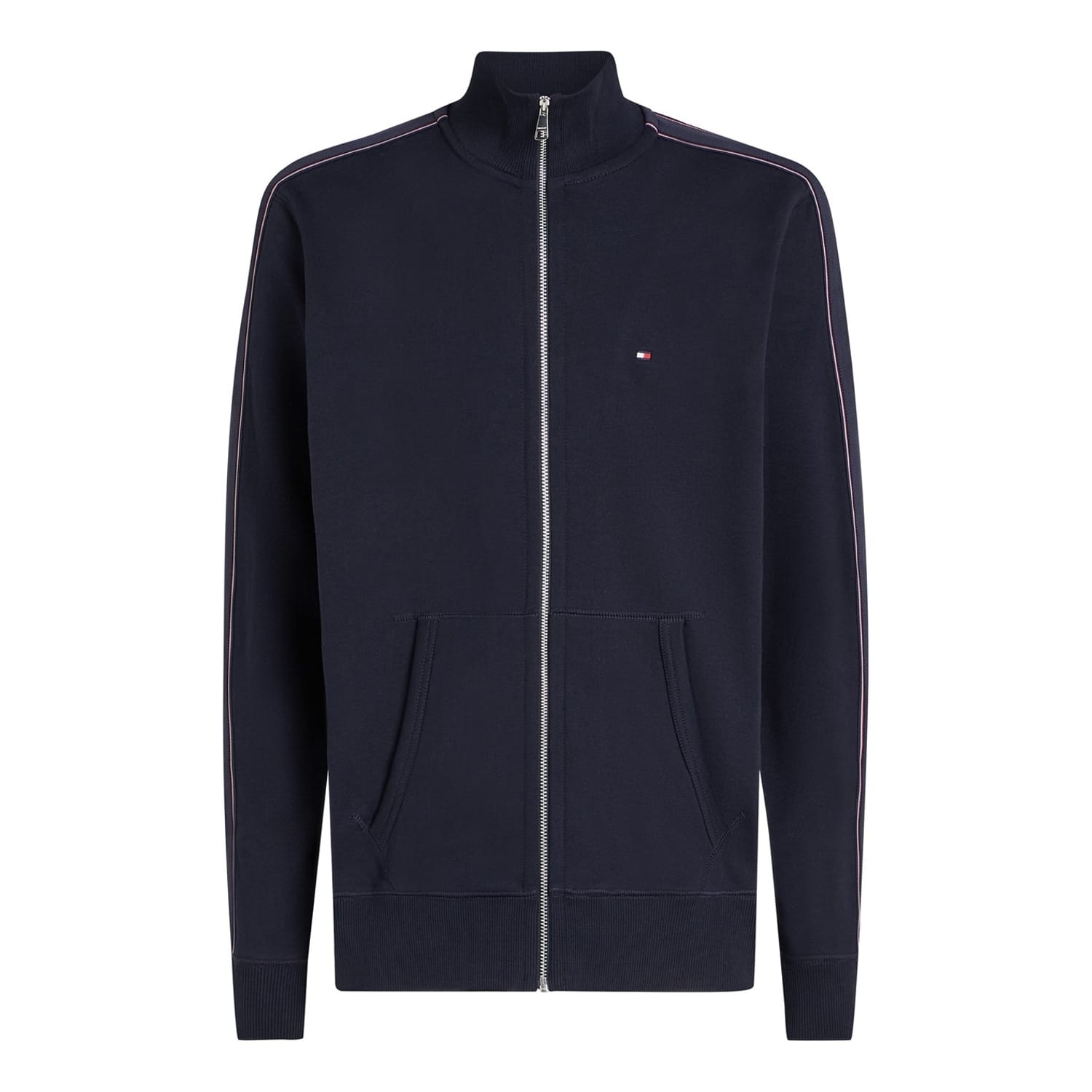 This Tommy Hilfiger sweatshirt is a stylish addition to any wardrobe. Featuring a band collar and a striking stripe pattern, it combines classic design with modern elements. The long sleeves are ribbed at the cuffs for added comfort. The regular fit ensures a relaxed silhouette, while the zipper closure adds convenience. A subtle logo embellishment completes the look. -