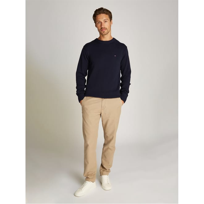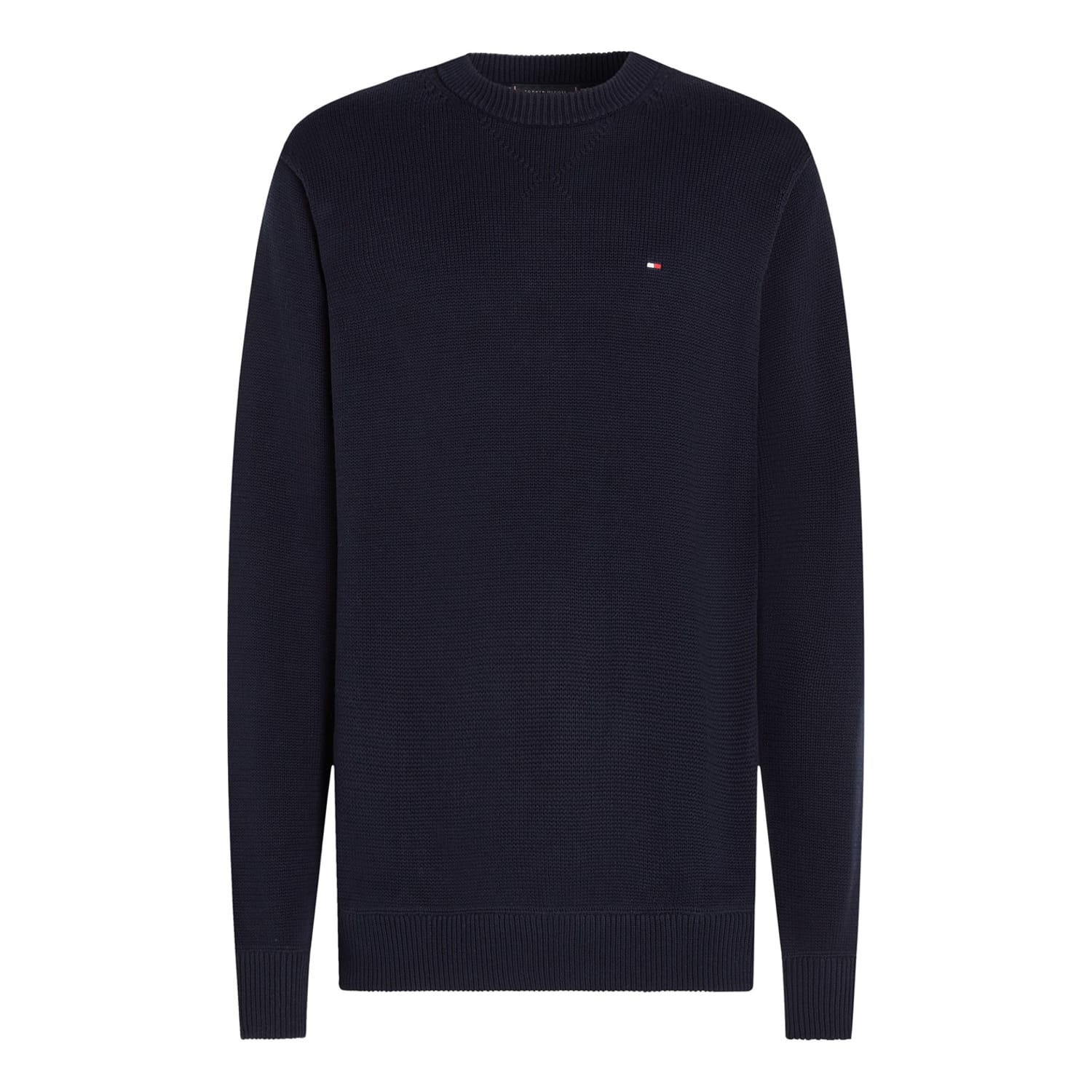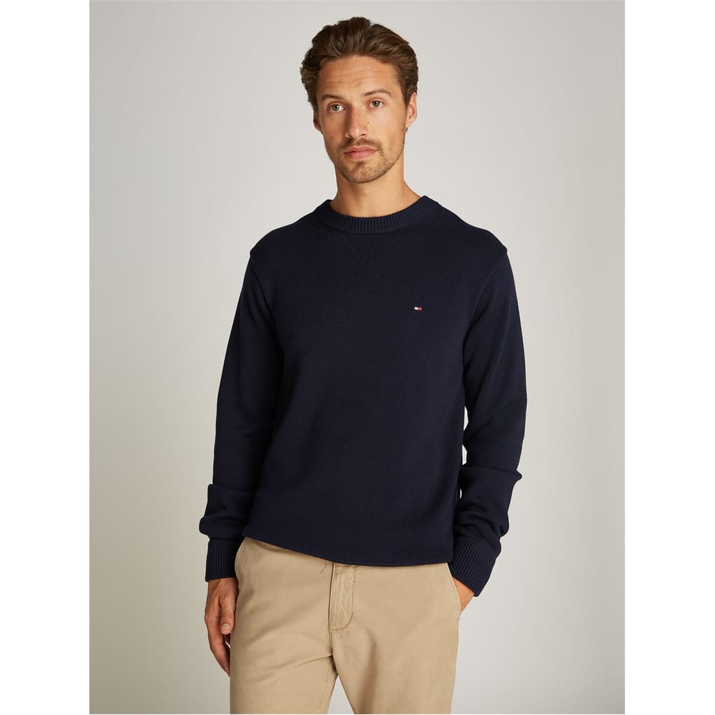 This Tommy Hilfiger top features a solid pattern with a crew neck and long sleeves. Designed in a regular fit, it includes ribbed cuffs and a ribbed collar for added comfort. The top is embellished with the iconic logo, offering a classic and stylish look. -