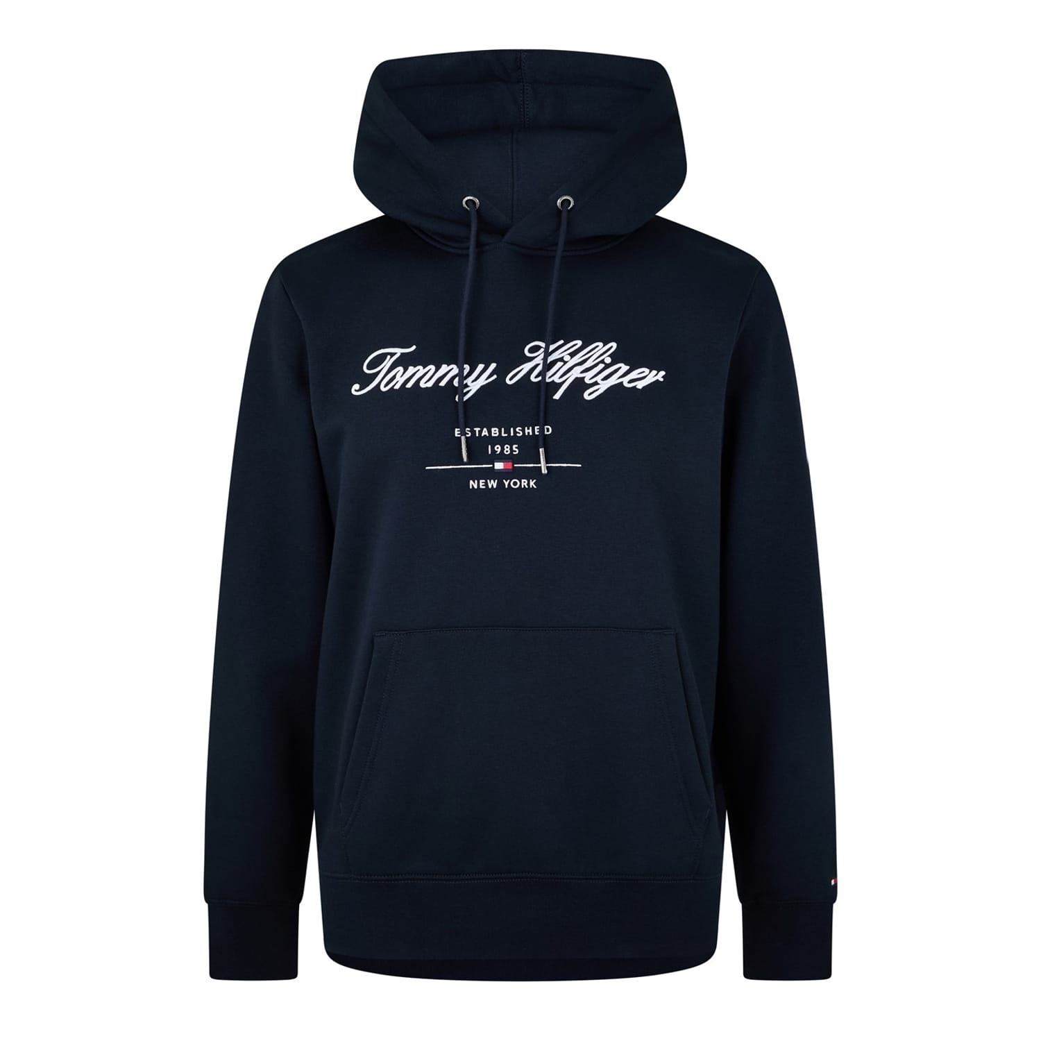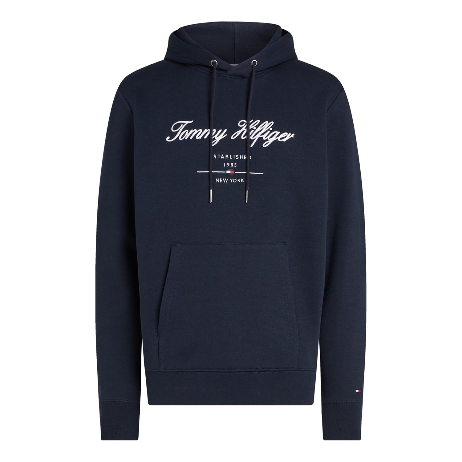 This Tommy Hilfiger top is a versatile addition to your casual collection. Featuring a hooded design with a drawstring closure, it offers a regular fit and long sleeves with ribbed cuffs. The top is adorned with an embroidered logo and graphic print, making it suitable for all seasons. -