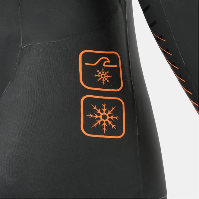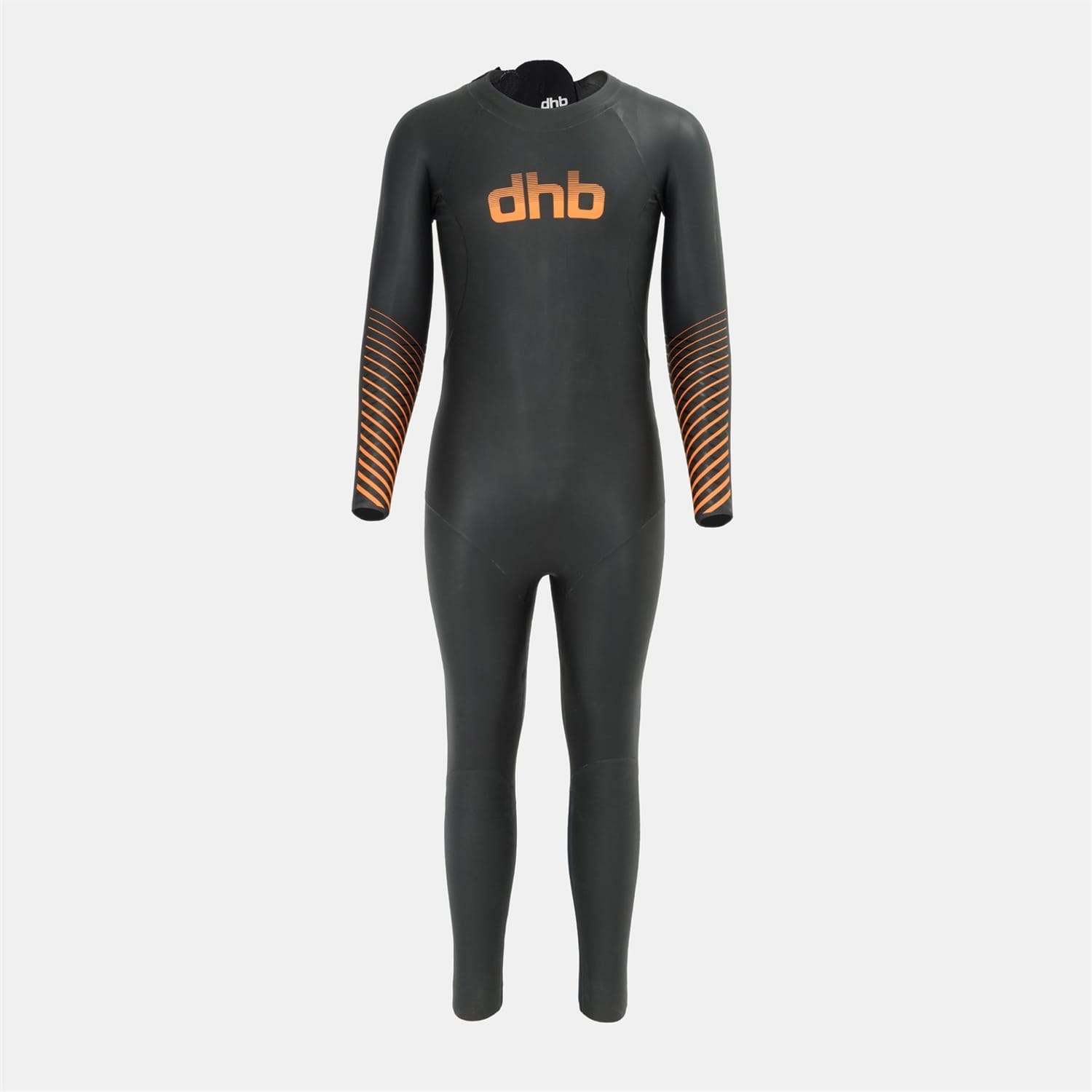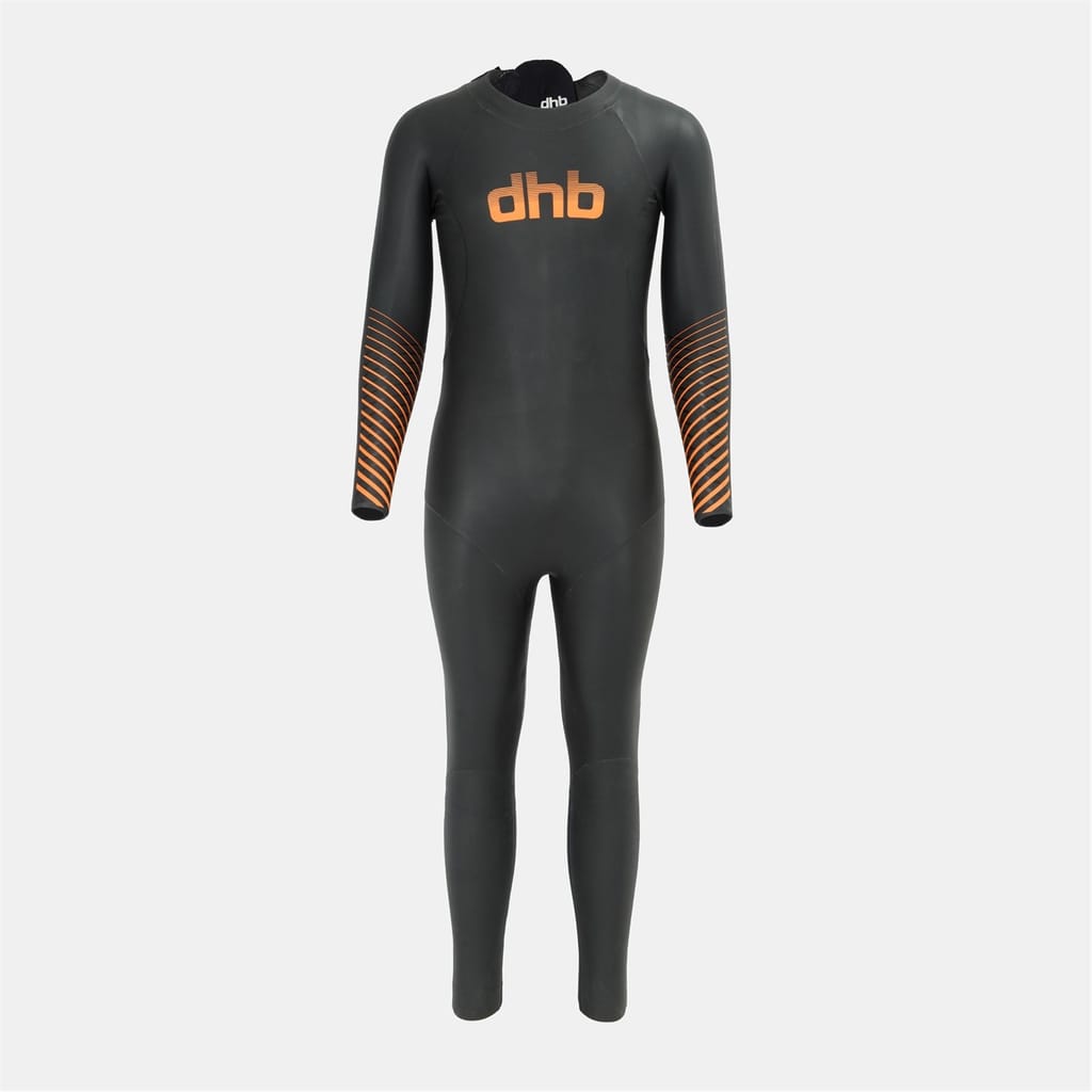 Dive into performance with dhb's swimwear, featuring a full wet suit style. This one-piece is designed for swimming enthusiasts, offering a sleek stripe pattern and a convenient zipper closure. The front logo and graphic embellishments add a touch of style, making it a standout choice for aquatic activities. -