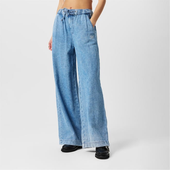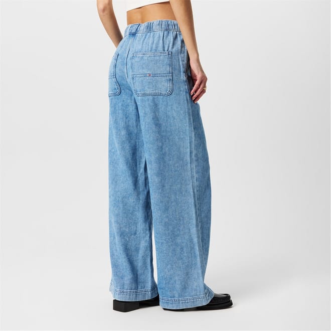 Discover the relaxed fit wide-leg jeans from Tommy Jeans, featuring a stylish drawstring closure. These jeans are adorned with a subtle logo embellishment, adding a touch of brand identity. The wide-leg cut offers a comfortable and contemporary silhouette, perfect for those seeking both style and ease in their wardrobe. -