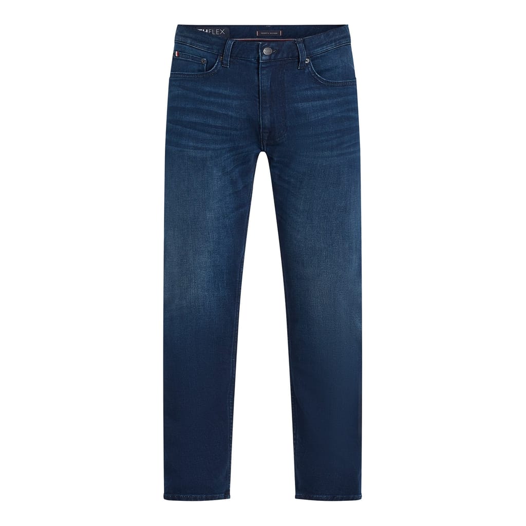 Discover the perfect blend of style and comfort with Tommy Hilfiger jeans. Featuring a zip fly and button closure, these jeans are adorned with a subtle logo and practical pockets. The slim fit design ensures a sleek silhouette, making them a versatile addition to your wardrobe. -