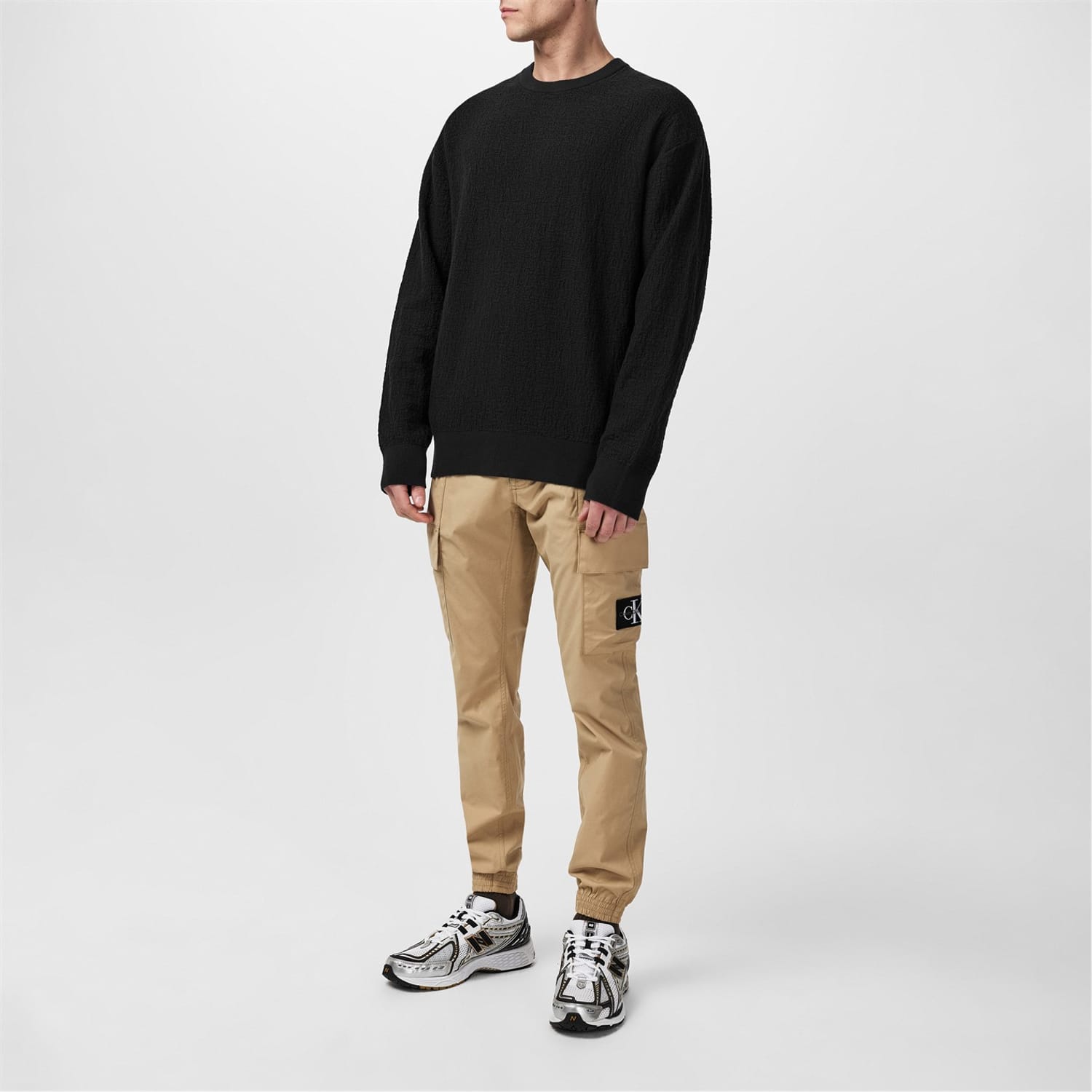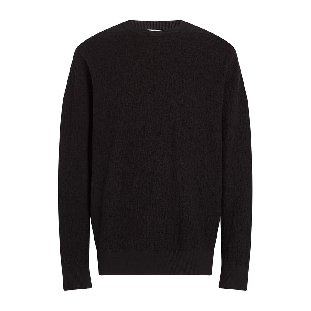 This Calvin Klein textured top features a relaxed fit and long sleeves with ribbed cuffs. The crew neck design adds a classic touch, making it a versatile addition to your wardrobe. -