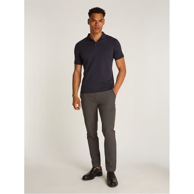 The Calvin Klein polo shirt is a refined addition to your semi-formal wardrobe. Crafted with a slim fit for a modern silhouette, it features a classic polo collar and a button closure. This short sleeve top offers a timeless style perfect for versatile dressing. -