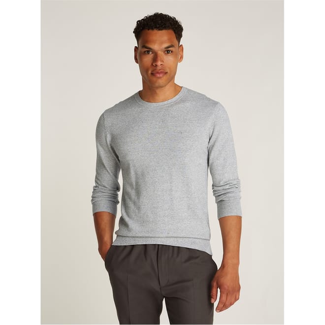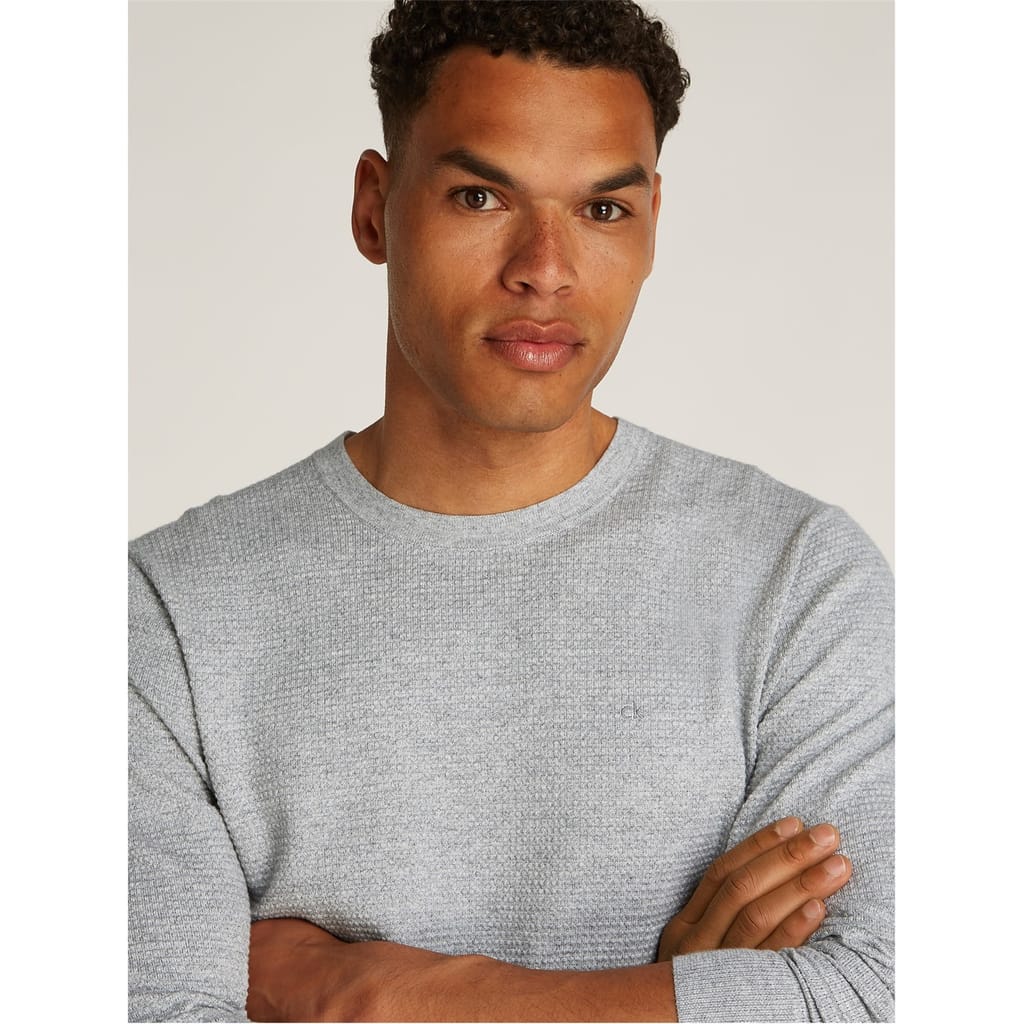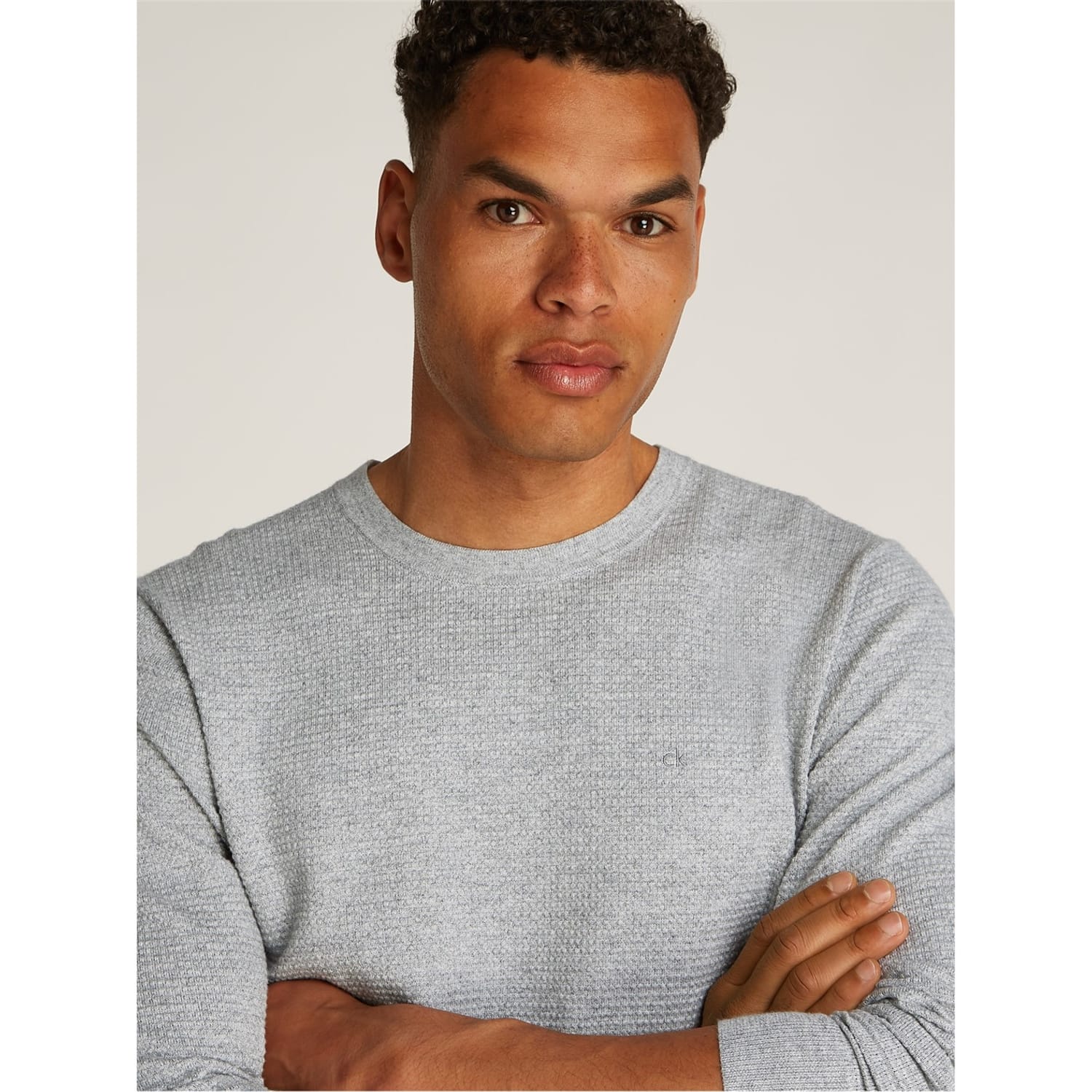 This Calvin Klein textured top features a crew neck and long sleeves, offering a regular fit. The design is completed with a subtle logo embellishment, adding a touch of brand identity to the piece. -