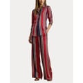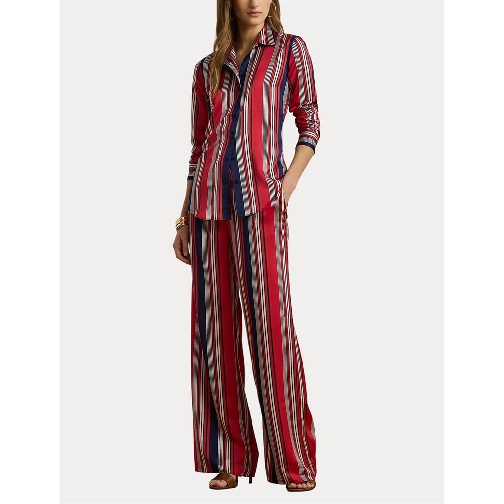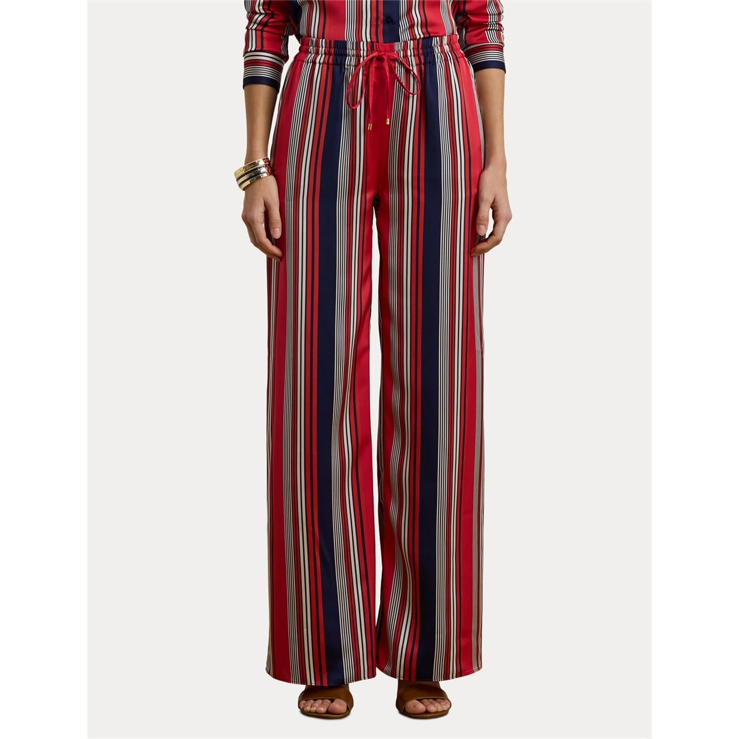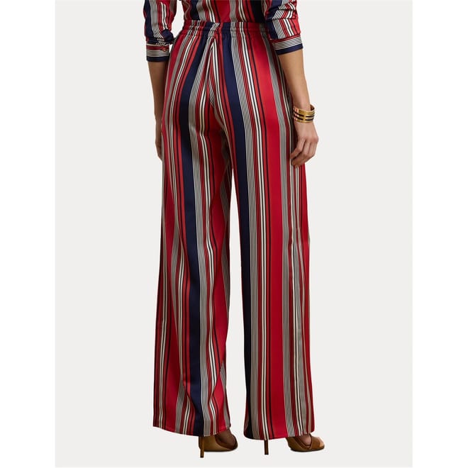 Elevate your wardrobe with these Striped Charmeuse Wide-Leg Trousers, designed for a lustrous sheen and a fluid drape. Distinguished by a chic wide-leg silhouette, the trousers are refreshed with a variegated striped pattern in the season's nautical-inspired colour palette. Perfect for sophisticated evenings, stylish getaways, or effortlessly polished daywear.