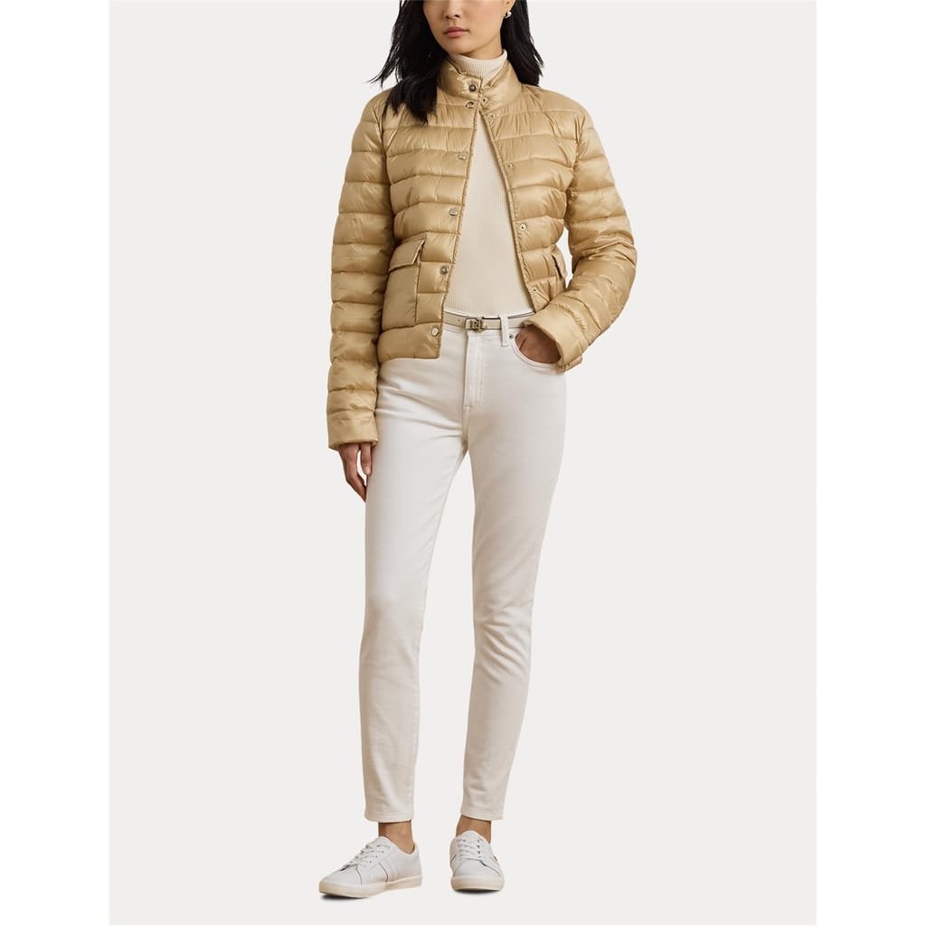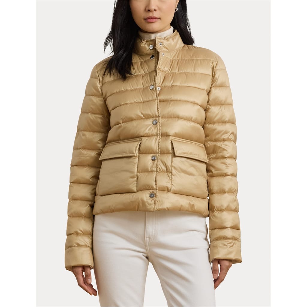 Discover the Lauren by Ralph Lauren puffer jacket, a stylish blend of function and fashion. This short, solid design features a high collar and a snap button closure, providing a snug fit. Ribbed cuffs add a touch of comfort, while the logo embellishment and practical pocket detail complete the look. Designed in a regular fit, this jacket is perfect for a chic yet practical wardrobe addition. -