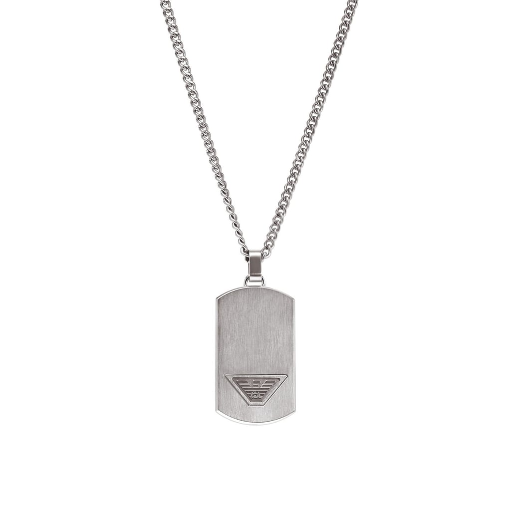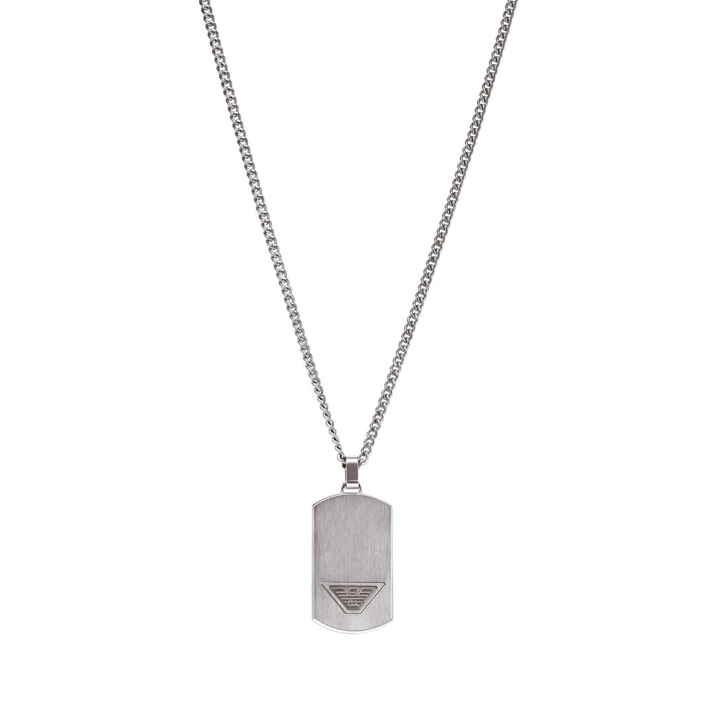 Emporio Armani's dog tag necklace features stainless steel and a lobster clasp closure.