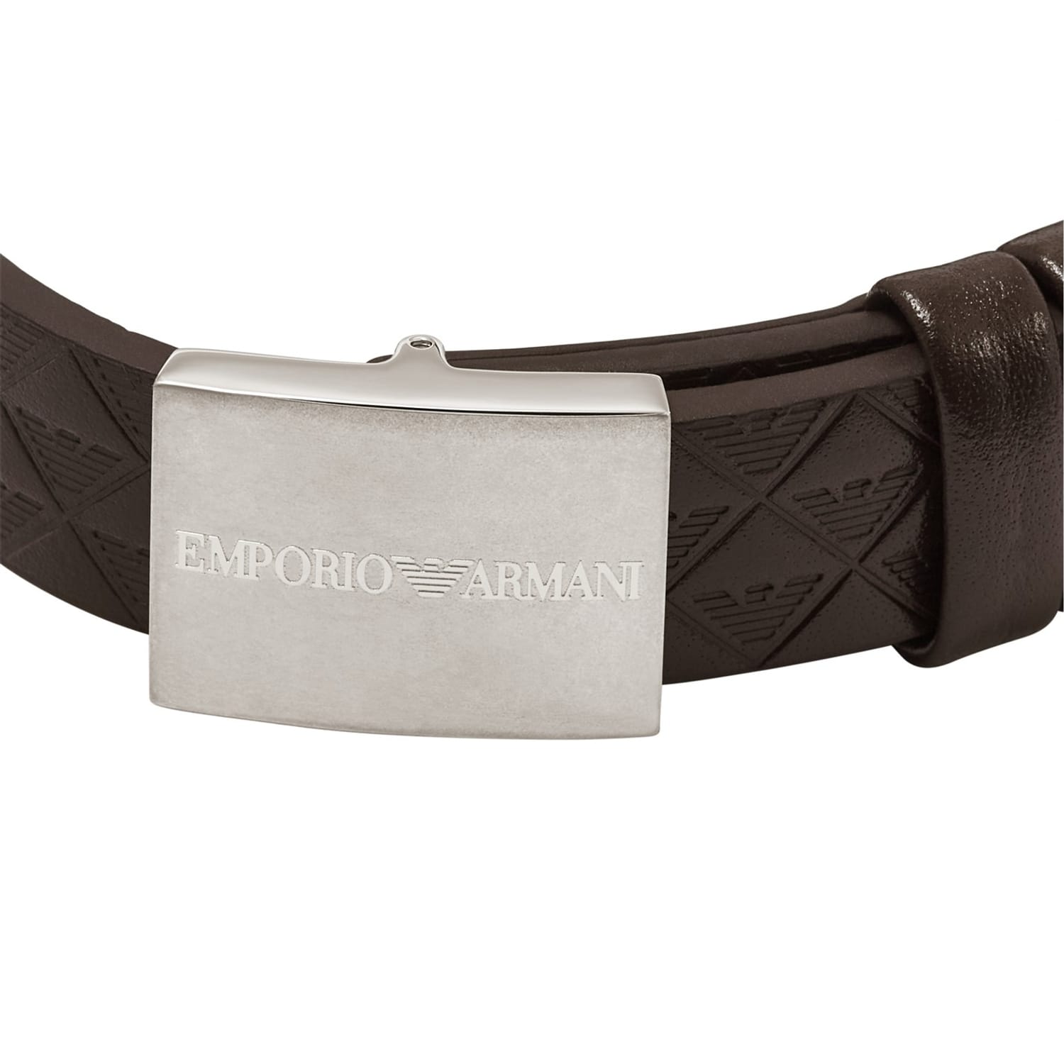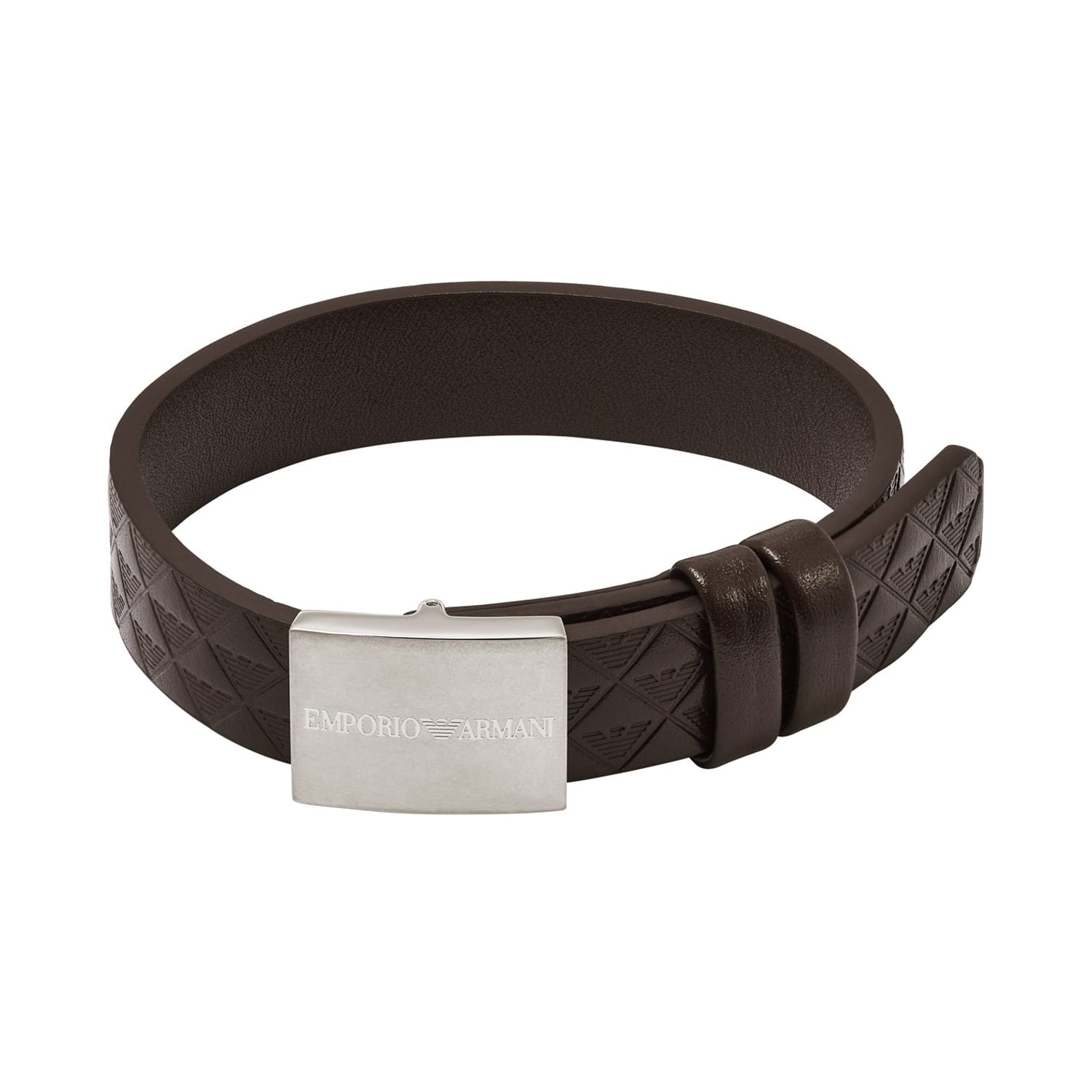 - EGS3135040 - Emporio Armani's strap bracelet features black leather with eagle pattern and a keeper closure.