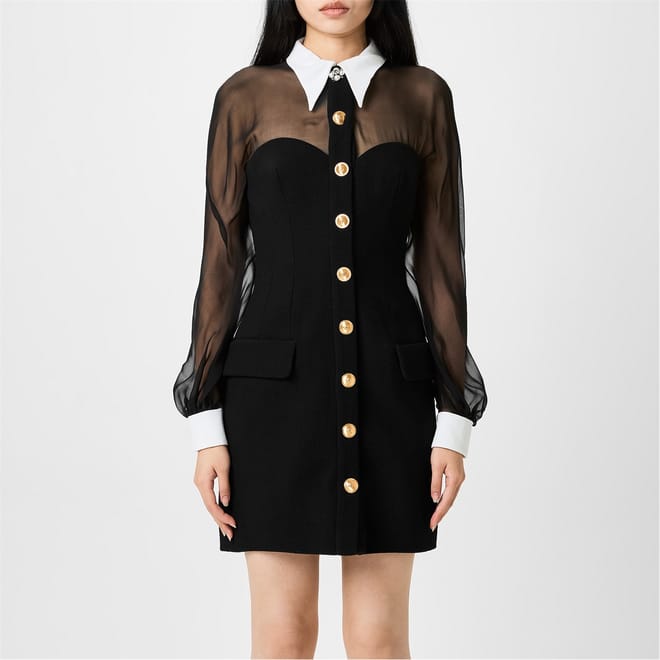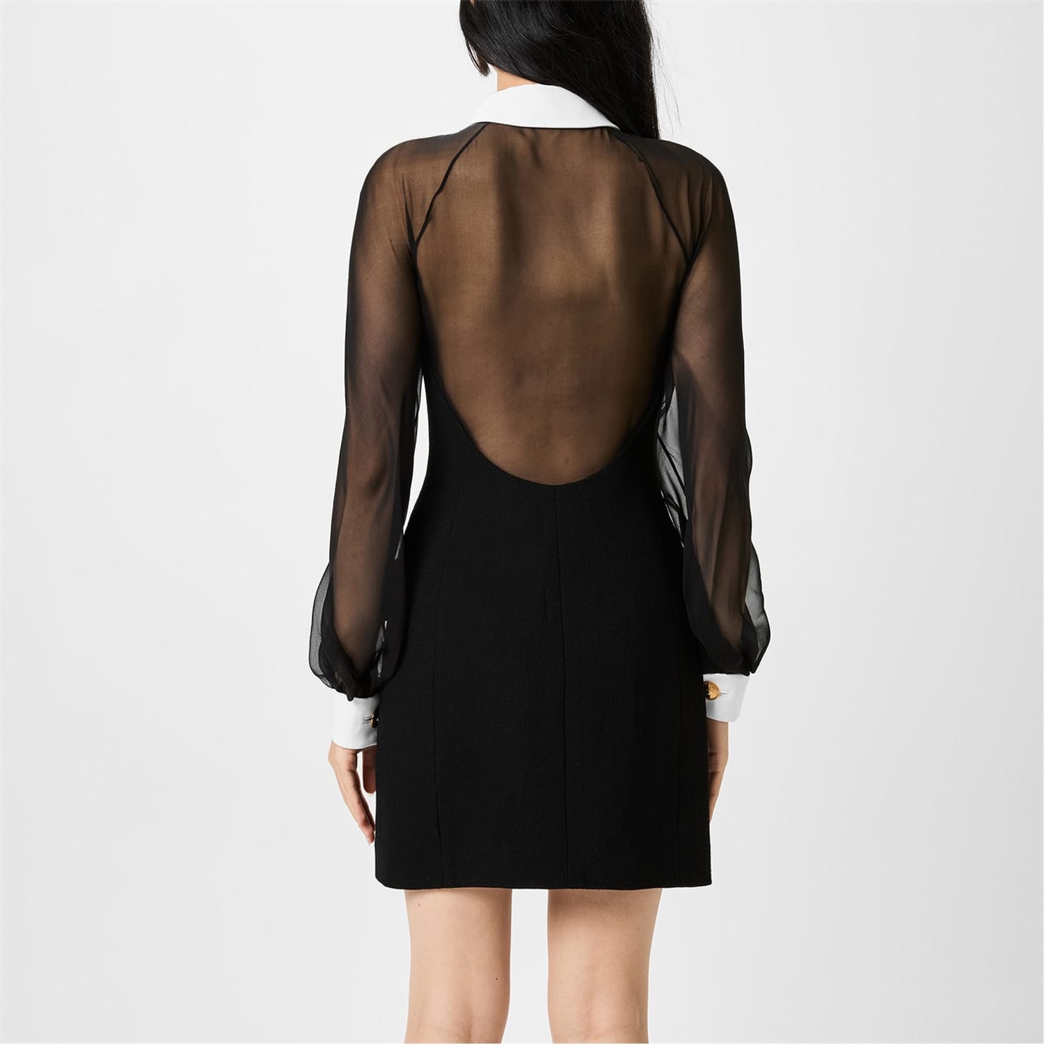 -Sheer chiffon sleeves with stretch wool-crêpe for an alluring appeal that enhances your comfort