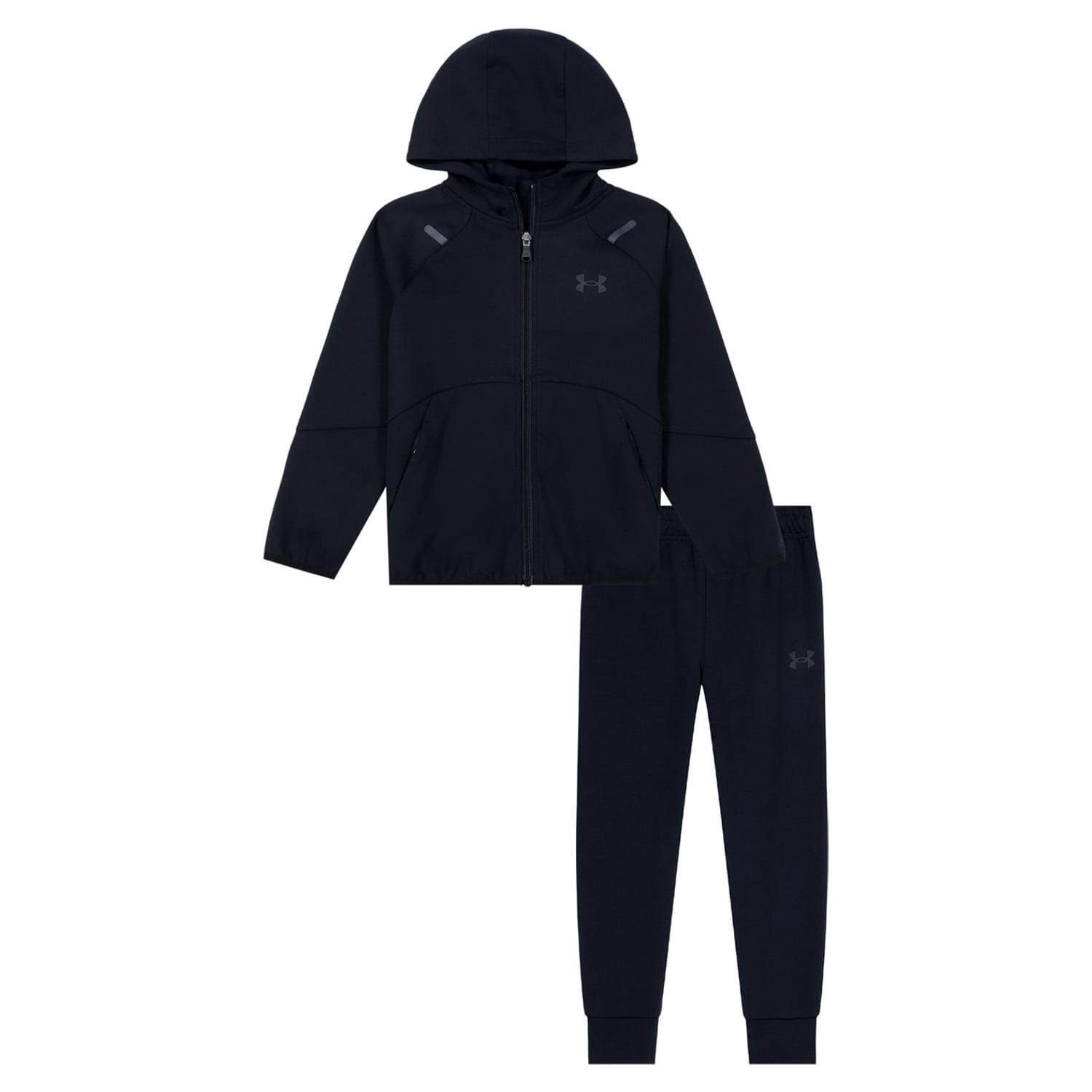Elevate your activewear collection with the Under Armour full track suit. This set features a hooded sweatshirt with raglan long sleeves, offering a comfortable fit. The double knit fabric ensures durability, while the logo embellishment adds a touch of style. Perfect for casual track activities, this set combines functionality and fashion effortlessly. -
