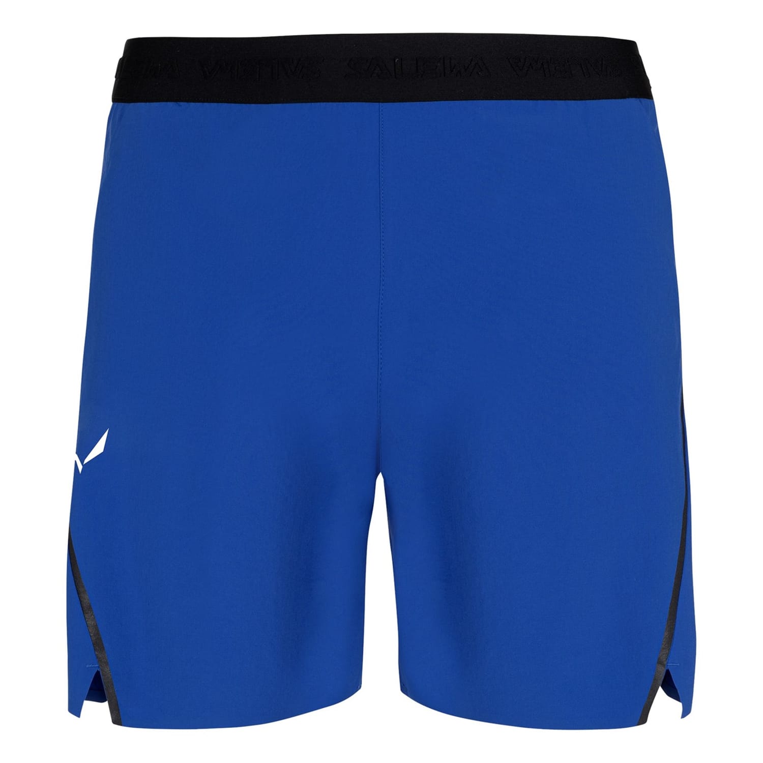 These Salewa athletic shorts are designed for performance with a solid pattern. Featuring an elasticated waistband for a secure fit, they are ideal for active pursuits. The shorts are embellished with a discreet logo, adding a touch of brand identity to the sleek, functional design. -