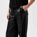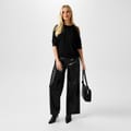 The Biba PU Wide Leg Trouser is a statement piece that effortlessly combines style and comfort. Designed with a flared leg, these trousers offer a flattering and elongating silhouette, perfect for any occasion. The smooth PU fabric adds a modern edge to your wardrobe, making these trousers a versatile addition to your collection. Featuring a button and zip fastening, along with two functional side pockets, these trousers are as practical as they are stylish. The faux pockets at the back add a sleek finish without adding bulk, while the belt loops give you the option to accessorise with your favorite belt for a more defined waist.