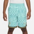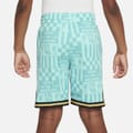 Nike basketball shorts from the sporting activity collection. These athletic shorts feature a drawstring closure for a secure fit. The checkerboard pattern adds a stylish touch, while the logo, pocket, and contrast detail embellishments enhance the overall design. Perfect for both casual and athletic wear. -