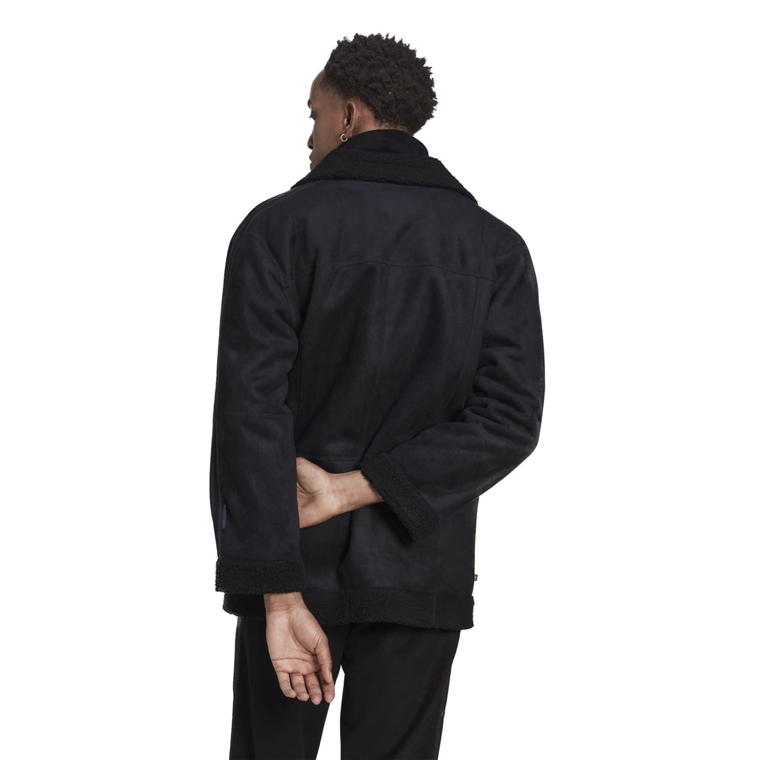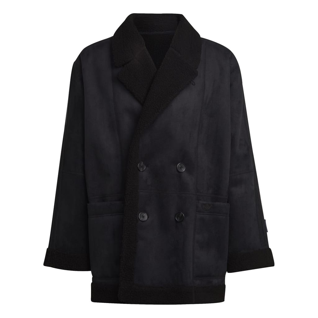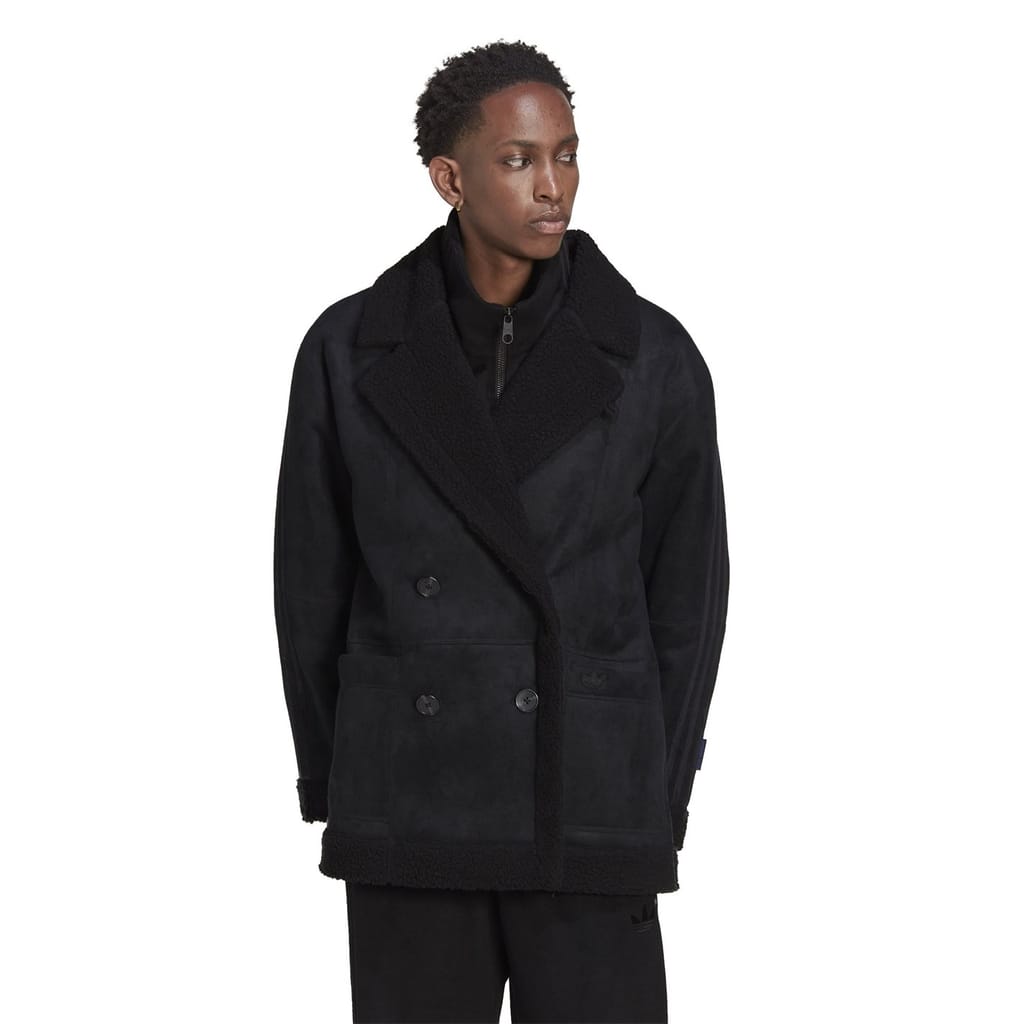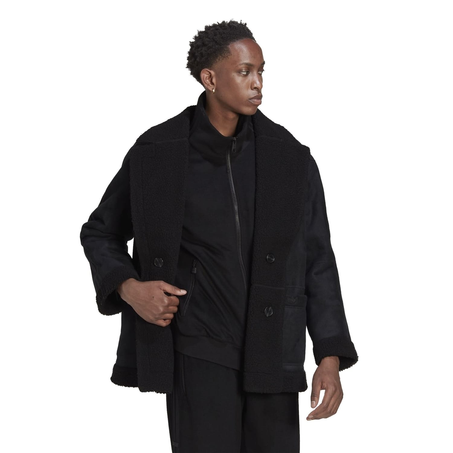 This adidas Originals jacket offers a relaxed fit with a collared neck design. Crafted with a solid pattern, it features a button closure for easy wear. The jacket is adorned with a distinctive logo, adding a touch of signature style. -