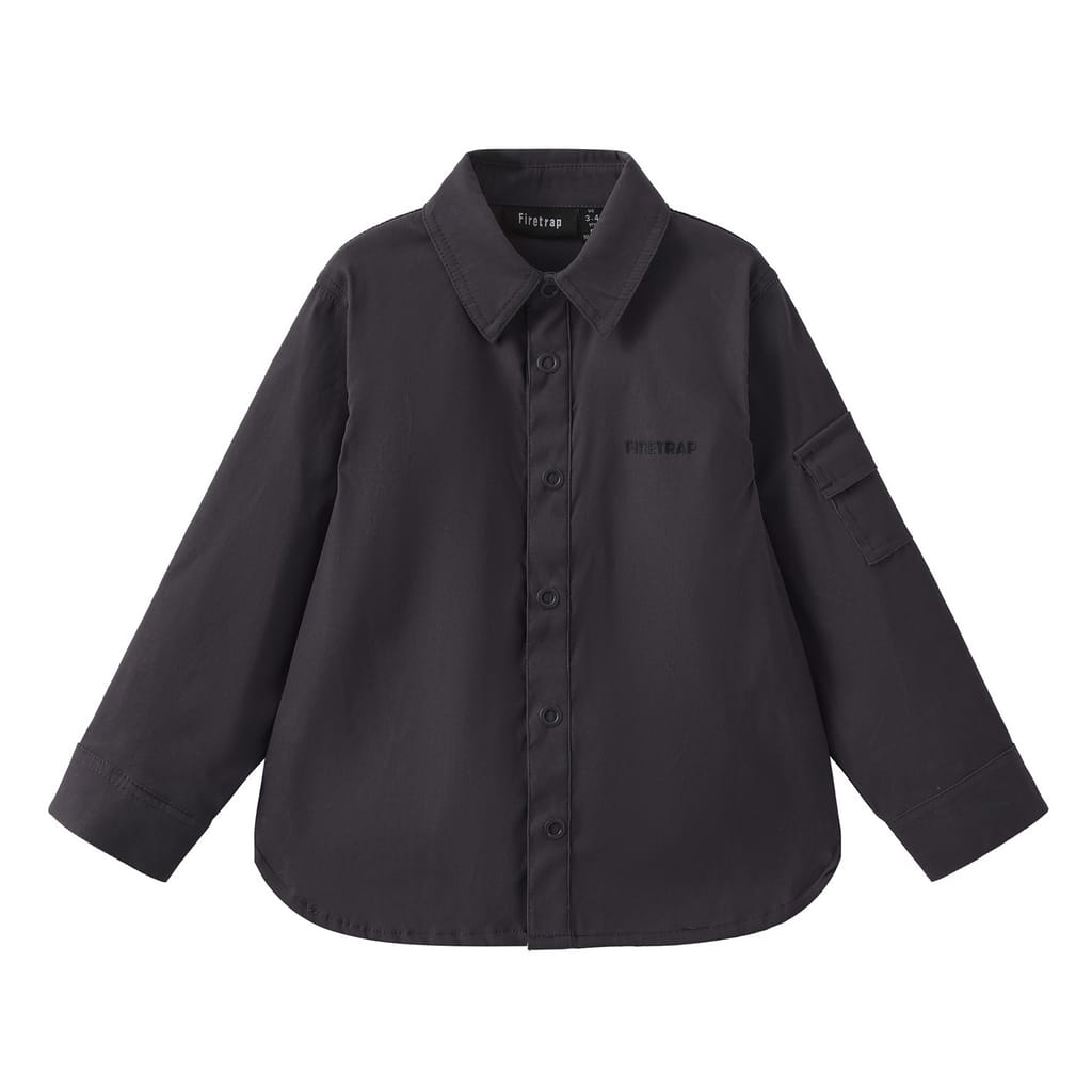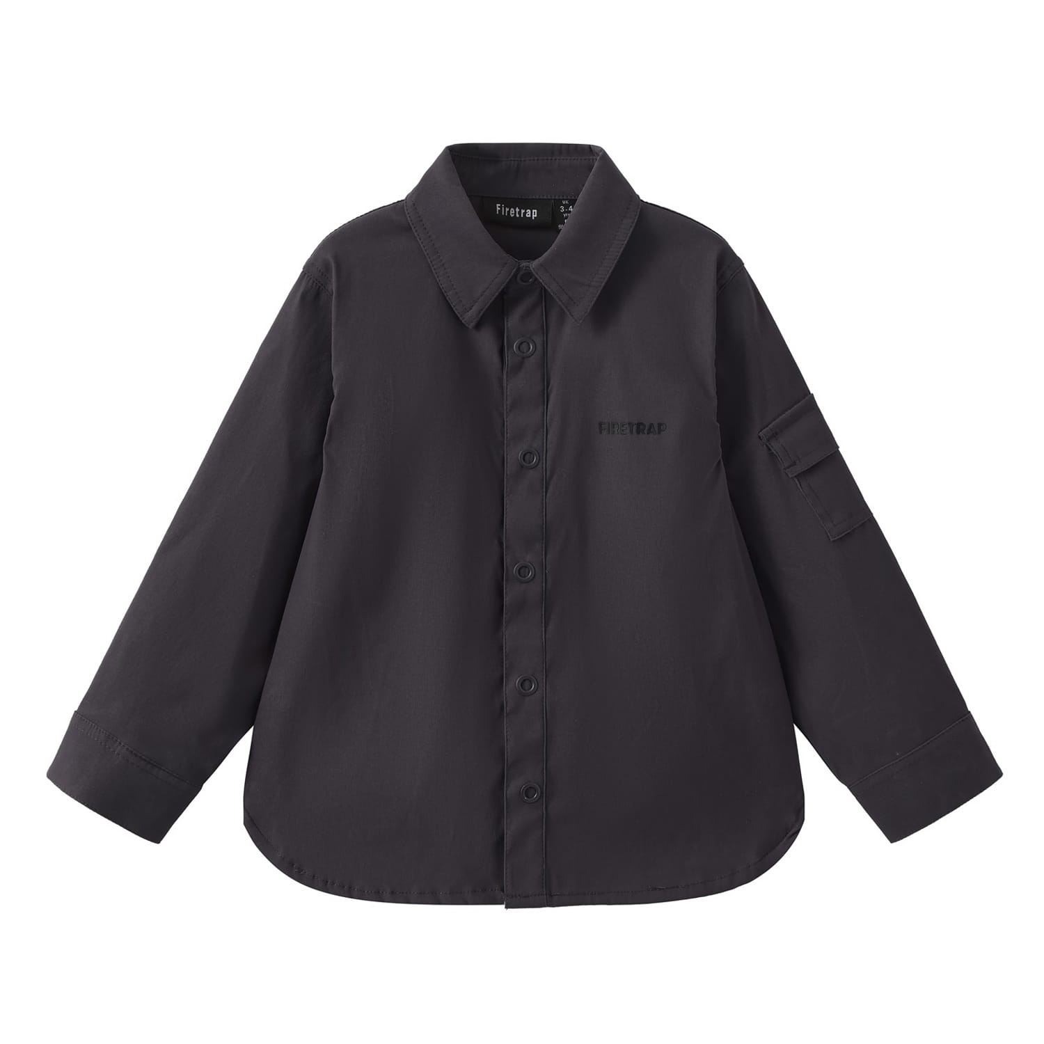 This Firetrap jacket for juniors features a shirt-style design with a solid pattern, making it a versatile addition to any wardrobe. It includes a shirt collar and button closure for added classic appeal. The regular fit ensures comfort, while the logo and pockets add functionality and style. The cuff sleeves complete the look, making it an ideal choice for everyday wear. -