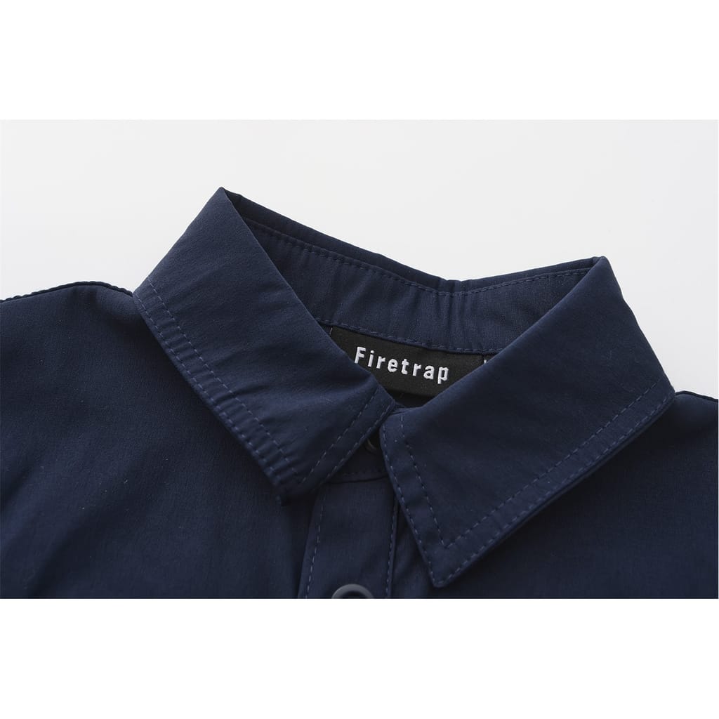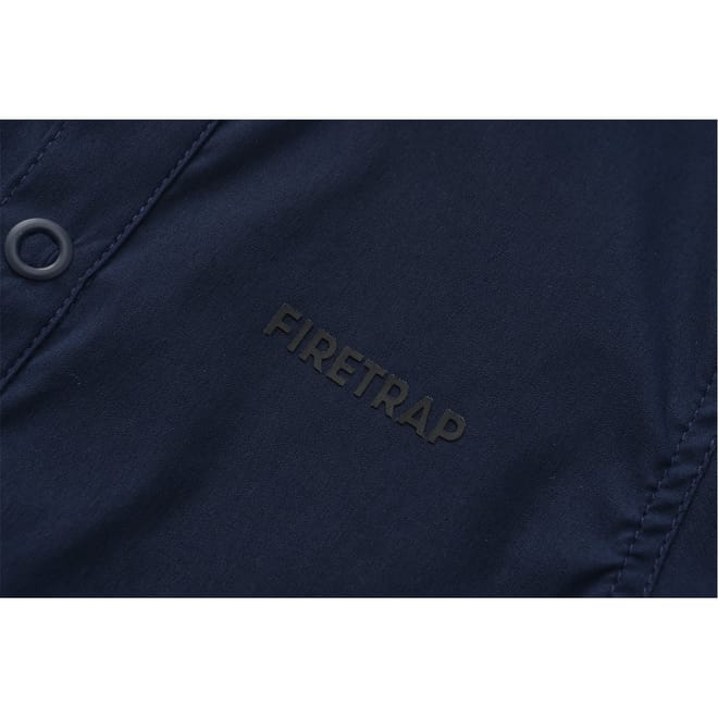 This Firetrap junior jacket combines the style of both a shirt and an overshirt, featuring a classic shirt collar and a button closure. The solid pattern and regular fit create a clean look, while the logo embellishment adds a touch of brand identity. Ideal for juniors looking for a versatile and stylish outerwear option. -