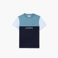 This Lacoste top for juniors features a regular fit and a crew neck. It showcases a stylish color block pattern and short sleeves, making it a perfect choice for casual collections. The iconic logo embellishment adds a touch of brand identity. -