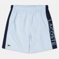 Dive into style with Lacoste swimwear, perfect for swimming and beach activities. This swim bottom features a drawstring closure for a secure fit. The design is enhanced with Lacoste lettering and a logo embellishment, adding a touch of brand identity to your swimwear collection. -
