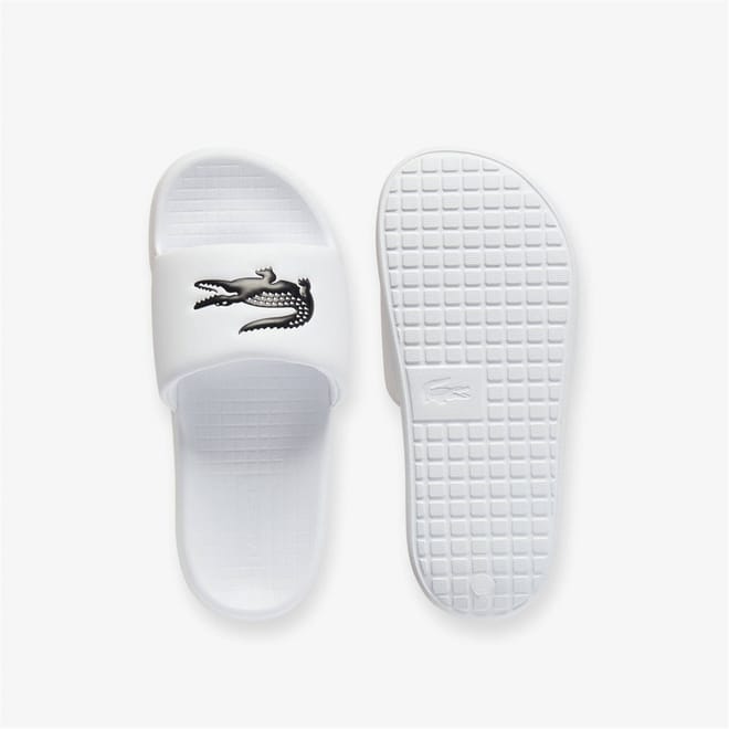 These Lacoste junior slides are perfect for young ones seeking comfort and style. Featuring an open toe design, these sandals showcase the iconic crocodile print, adding a playful touch. Ideal for casual outings, they offer a blend of practicality and fashion, making them a must-have addition to any junior's footwear collection. -