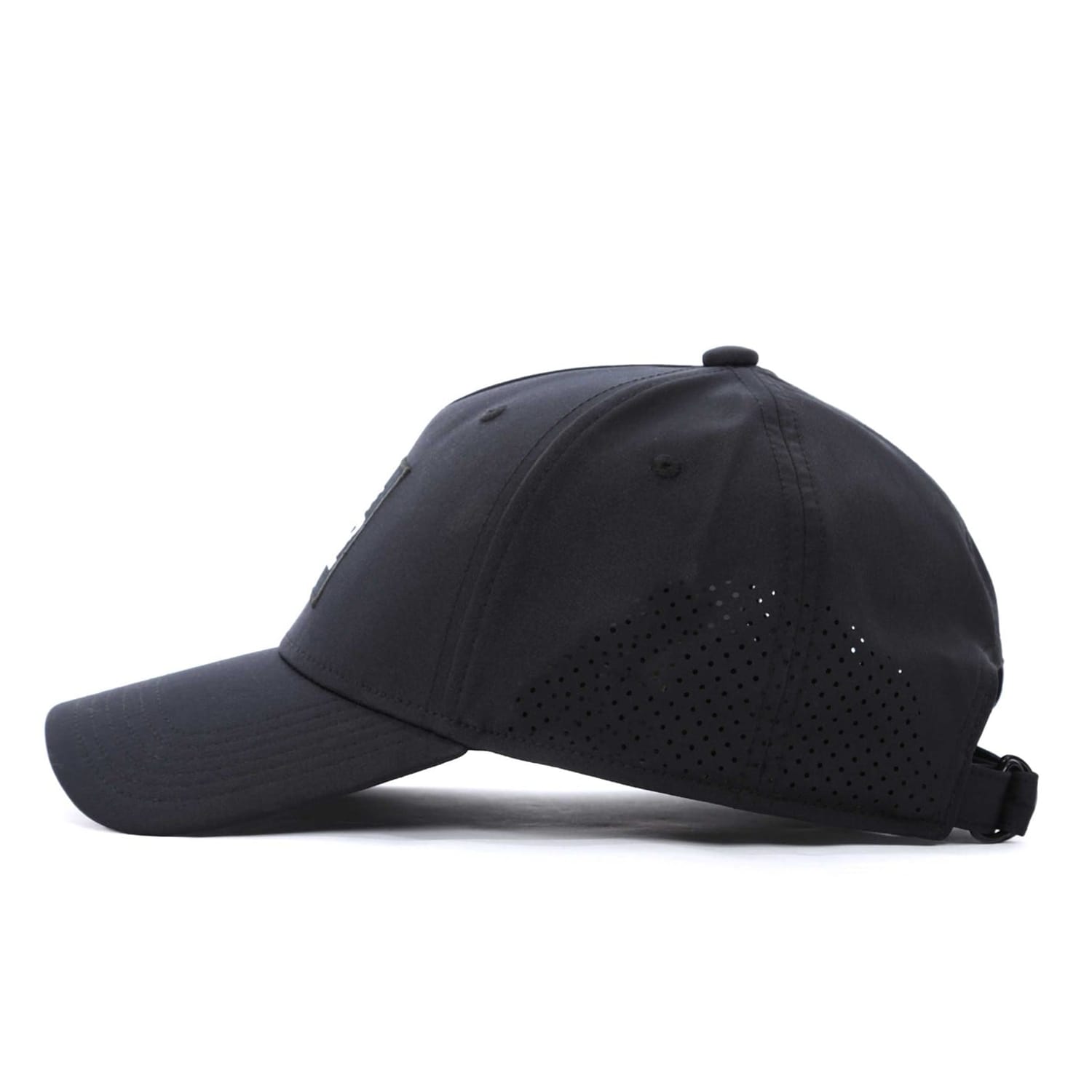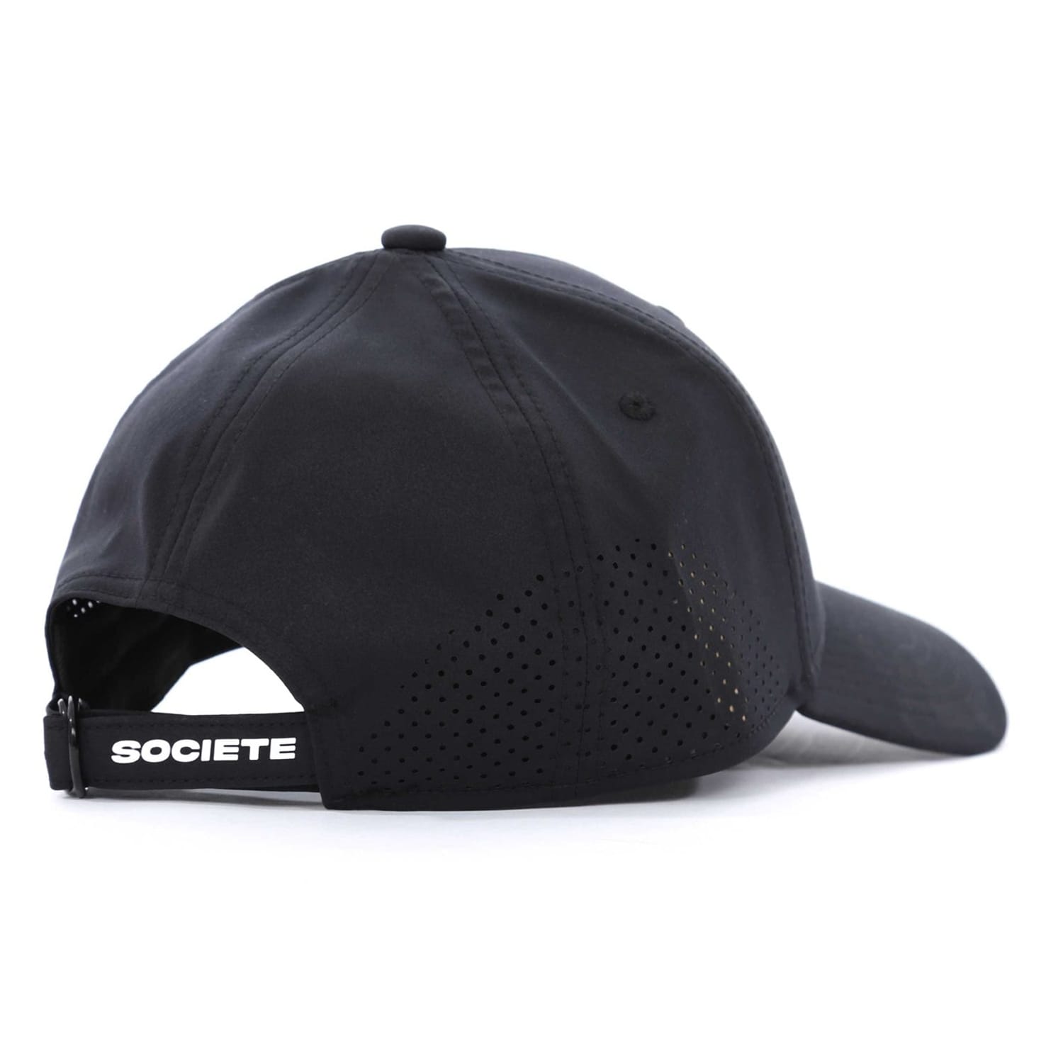 Discover the Societe Noir trucker cap, featuring a stylish strap back closure for a comfortable fit. This cap is adorned with a distinctive rubber badge and a logo patch, adding a touch of unique flair. Perfect for those who appreciate a blend of functionality and design in their headwear. -