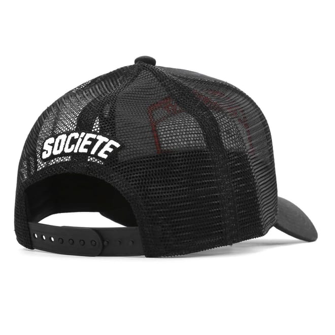 Discover the Societe Noir trucker cap, featuring a stylish snap-back closure for a comfortable fit. This cap is adorned with a distinctive logo patch, adding a touch of flair to your ensemble. Perfect for those who appreciate a blend of functionality and design, this cap is a must-have accessory. -