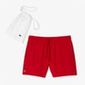 Enhance your collection with these Lacoste Swim Shorts. Constructed with an elasticated waistband and drawstring adjustment for a classic look. These shorts boast a simple design and are then completed with the Lacoste signature logo to complete the look and add that designer element. Pouch Bag available while stocks last. -