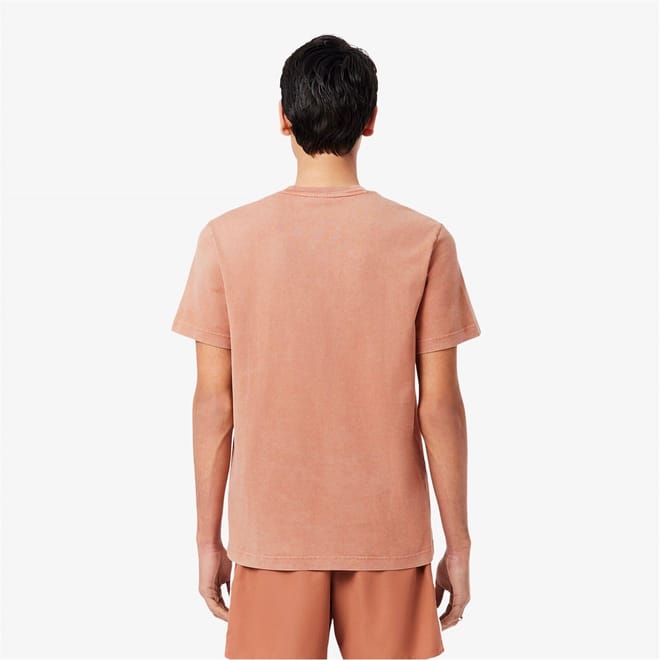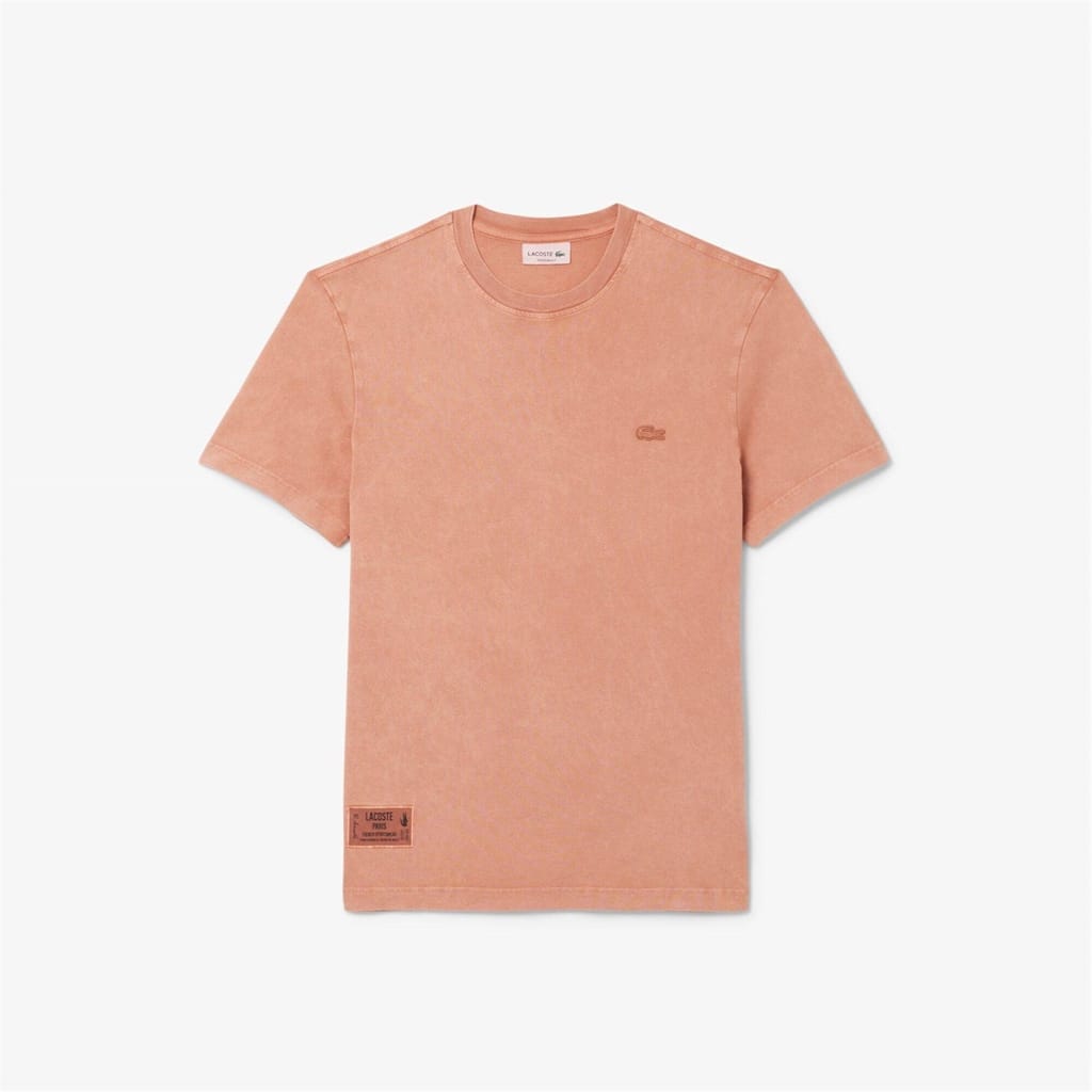 This Lacoste top from the casual collection features a regular fit and short sleeves. It showcases a solid pattern with a crew neck, adorned with a distinctive logo patch and crocodile print, adding a unique touch to the design. -