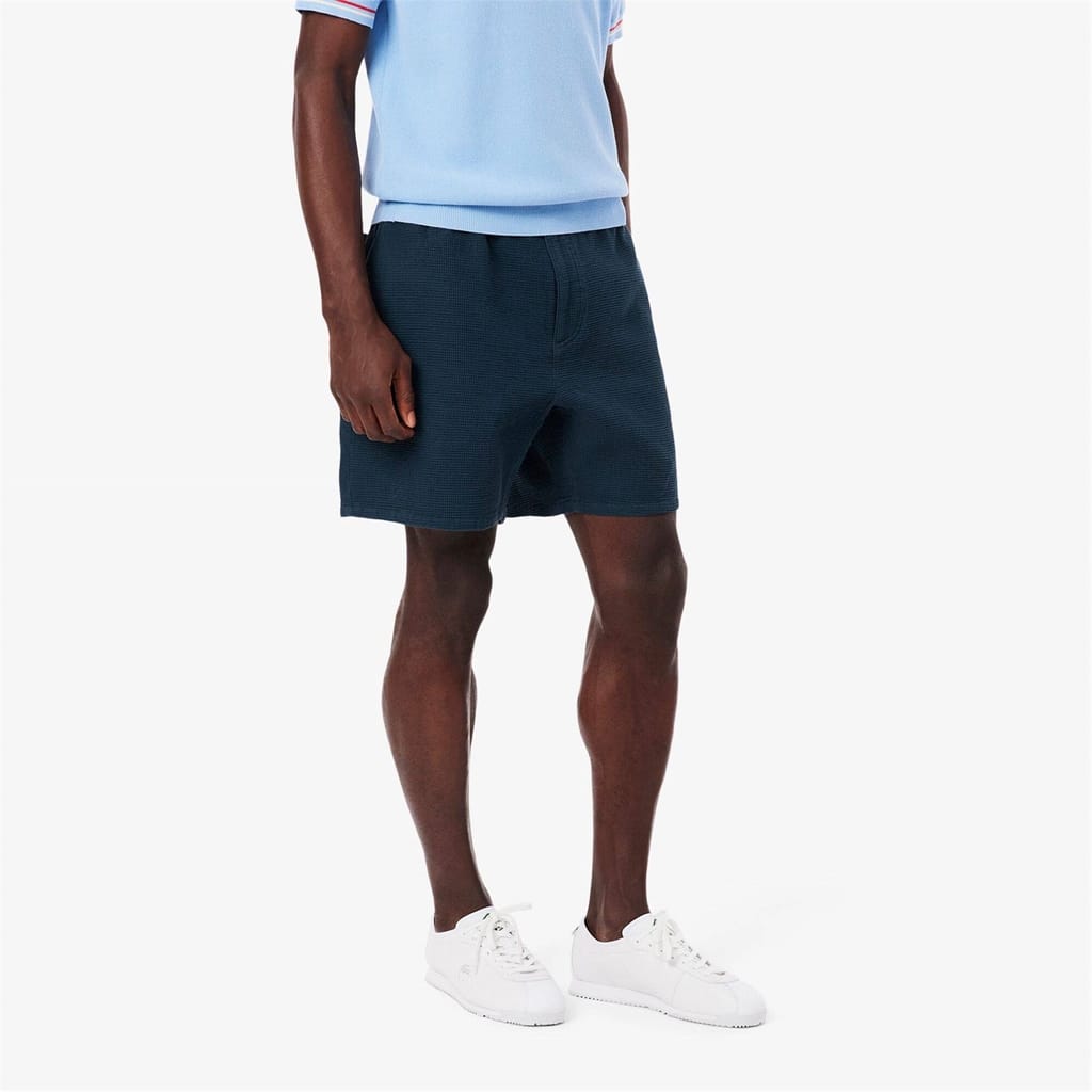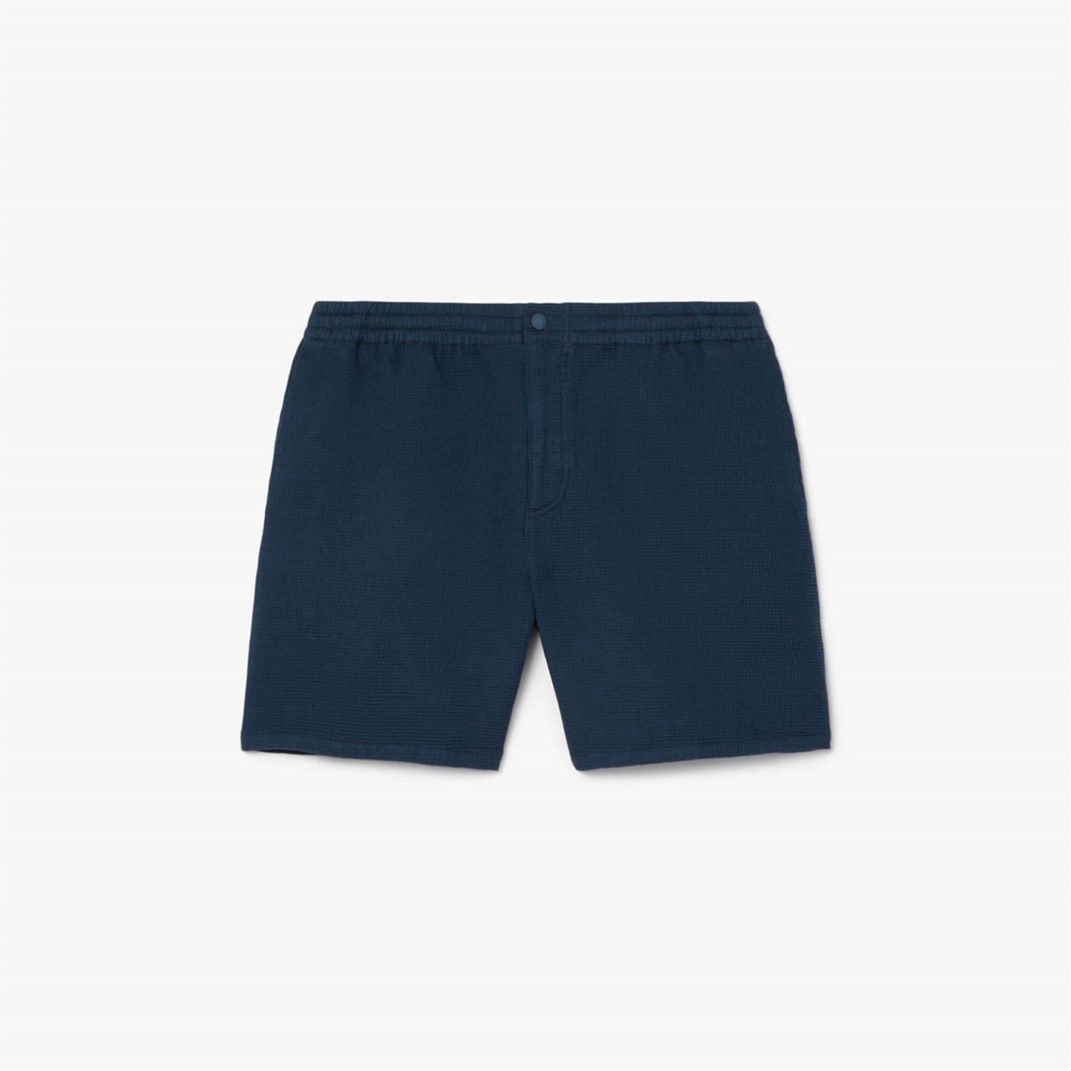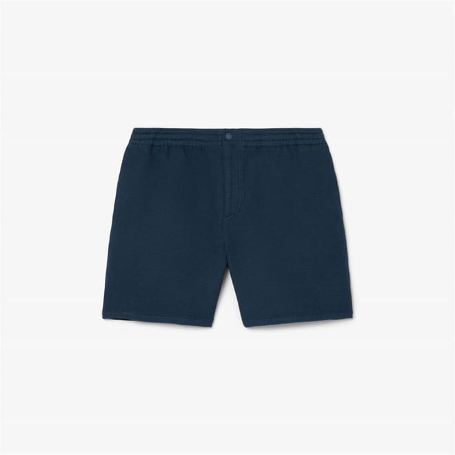 Discover Lacoste shorts, a perfect blend of style and comfort. These solid woven bermuda shorts feature a drawstring closure and a back pocket for added convenience. The iconic logo embellishment adds a touch of brand identity, making them a versatile addition to your casual collection. -