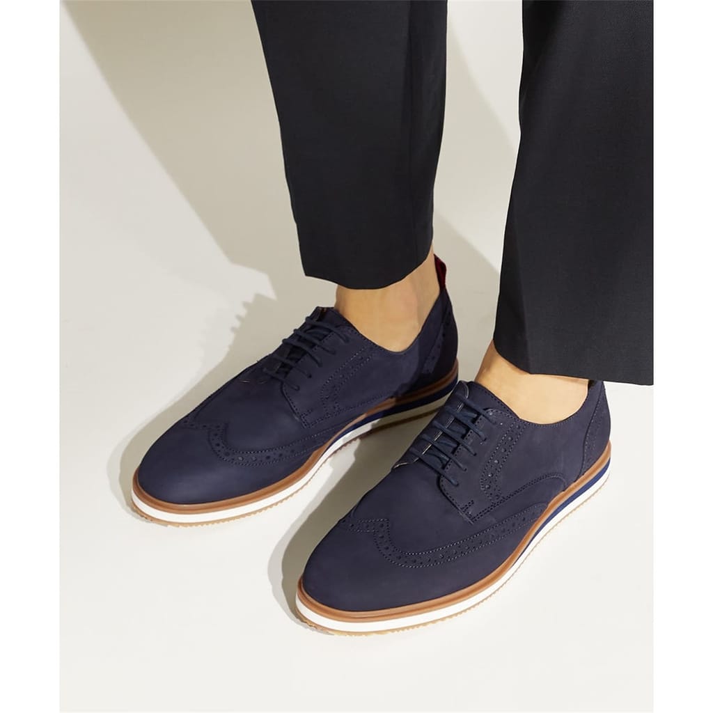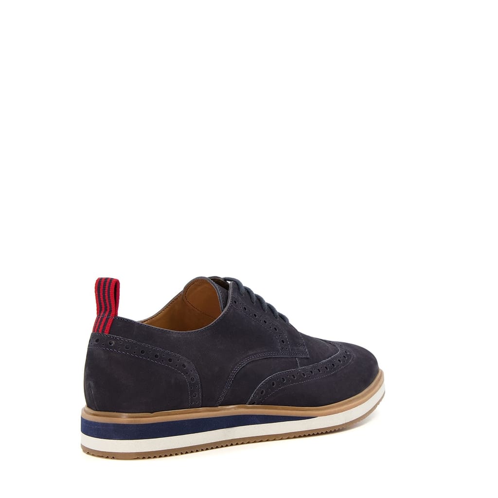 Take your smart-casual shoe collection to new heights with our Britle design. Crafted with the finest nubuck leather, these lace-ups have an almond toe and are accentuated with the usual brogue motif that's been re-worked with a sporty wedge sole. Offering all-day comfort with style, the stripy pull-tab will allow you to slip yours on with ease. -