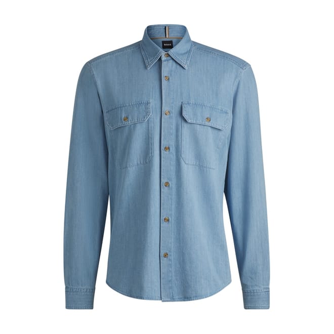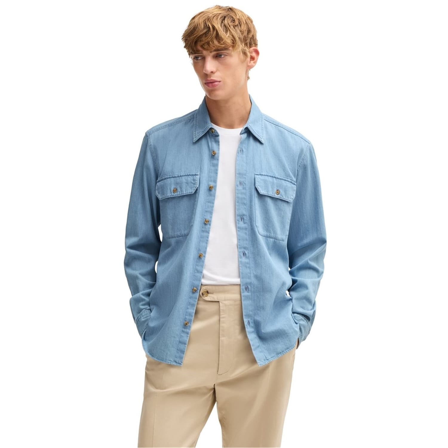 This Boss top features a classic shirt collar and a button-down closure, offering a regular fit. The solid pattern adds a timeless touch, while the chest pocket provides a practical embellishment. Ideal for a polished look, this top combines style and functionality effortlessly. -