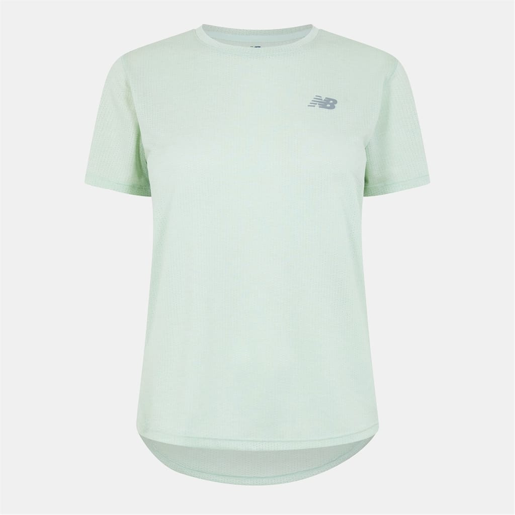 This New Balance top is designed for activewear enthusiasts. Featuring a crew neck and short sleeves, it offers a regular fit for optimal comfort during sporting activities. The solid pattern is complemented by a subtle logo embellishment, making it a practical choice for performance-focused individuals. -