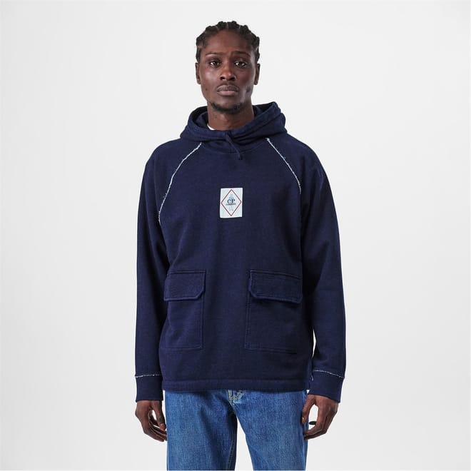 This hooded sweatshirt is part of C.P Company's SS25 'Indigo' Collection. A group of overdyed goods boasting the heritage C.P. denim-wear sailor badge. -