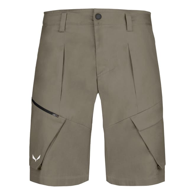 These Salewa cargo shorts are designed for performance. Featuring a button and zipper closure, they offer practicality with multiple pockets, including side and front pockets. The solid pattern and discreet logo embellishment add a sleek touch. Ideal for versatile use. -
