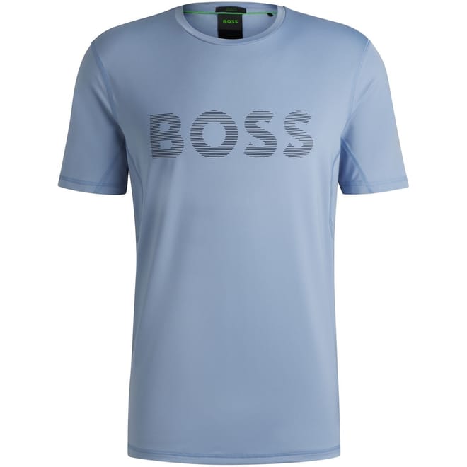 This Boss top is a versatile addition to your casual and activewear collection. Featuring a crew neck and regular fit, it offers comfort and style. The graphic print with lettering adds a modern touch, while the logo embellishment subtly showcases the brand's identity. Ideal for those seeking a blend of fashion and functionality. -