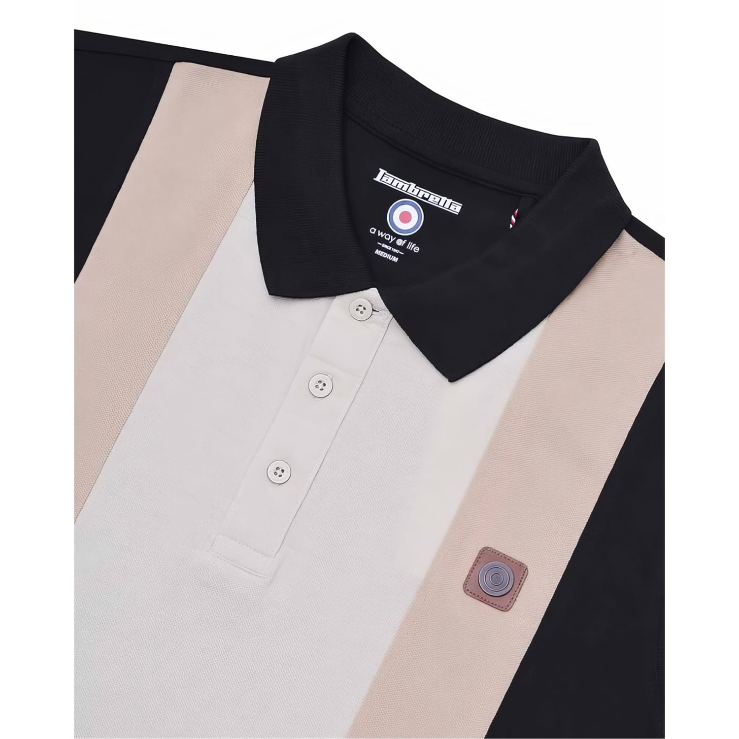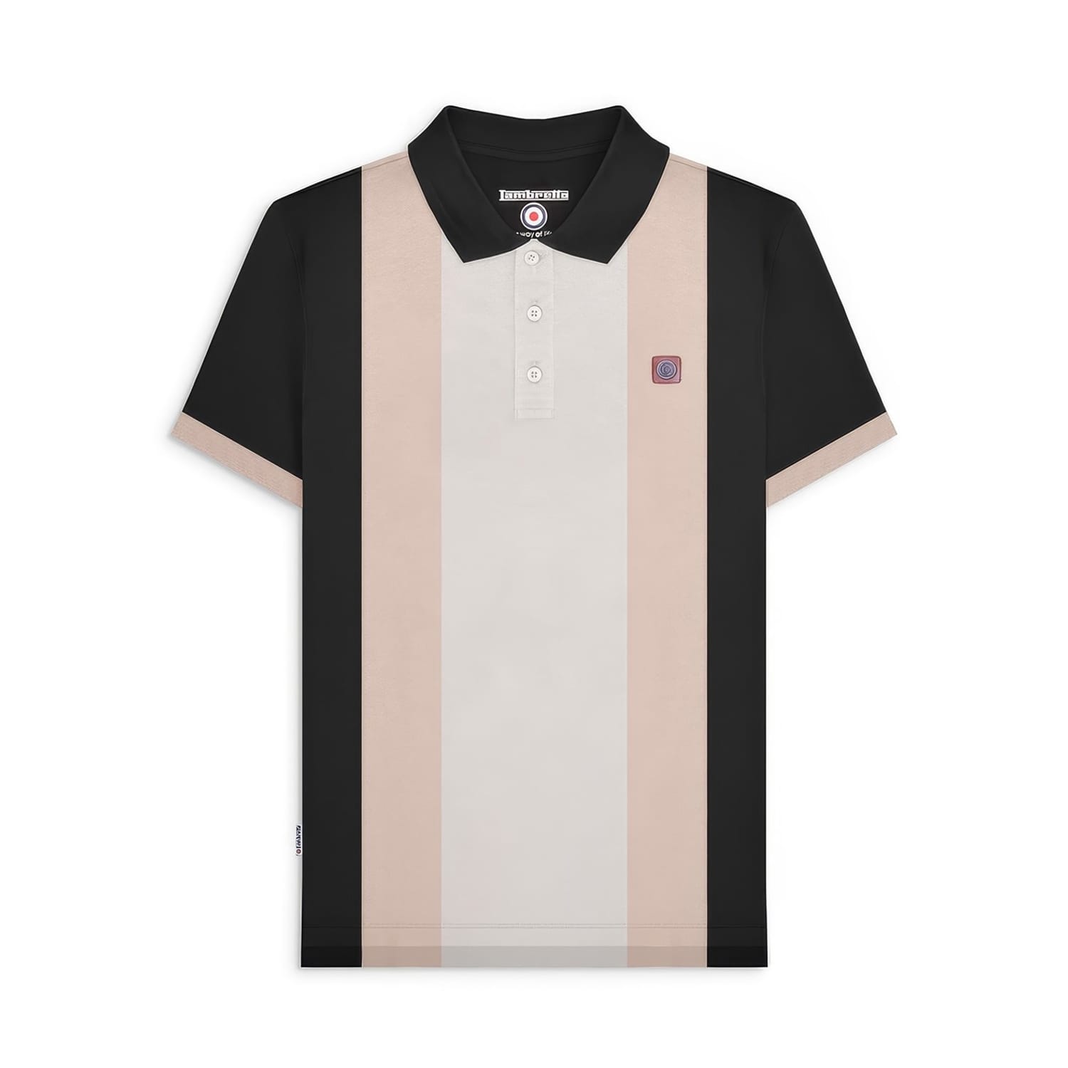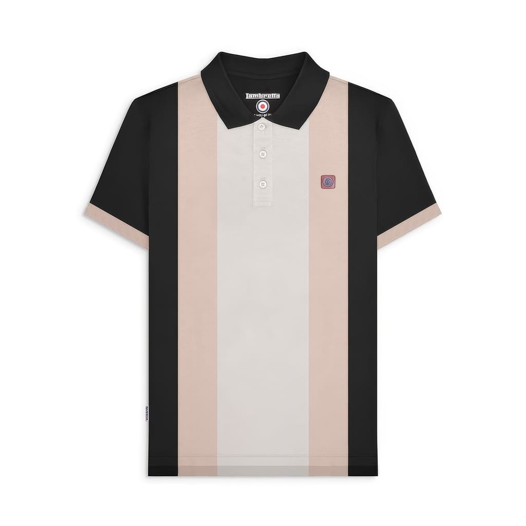 Elevate your semi-formal wardrobe with the Lambretta polo shirt. This short-sleeve top features a stylish vertical stripe pattern and a classic polo collar. Designed for comfort, it offers a regular fit with a ribbed cuff and button closure. The panel and logo embellishments add a distinctive touch, making it a perfect choice for various occasions. -