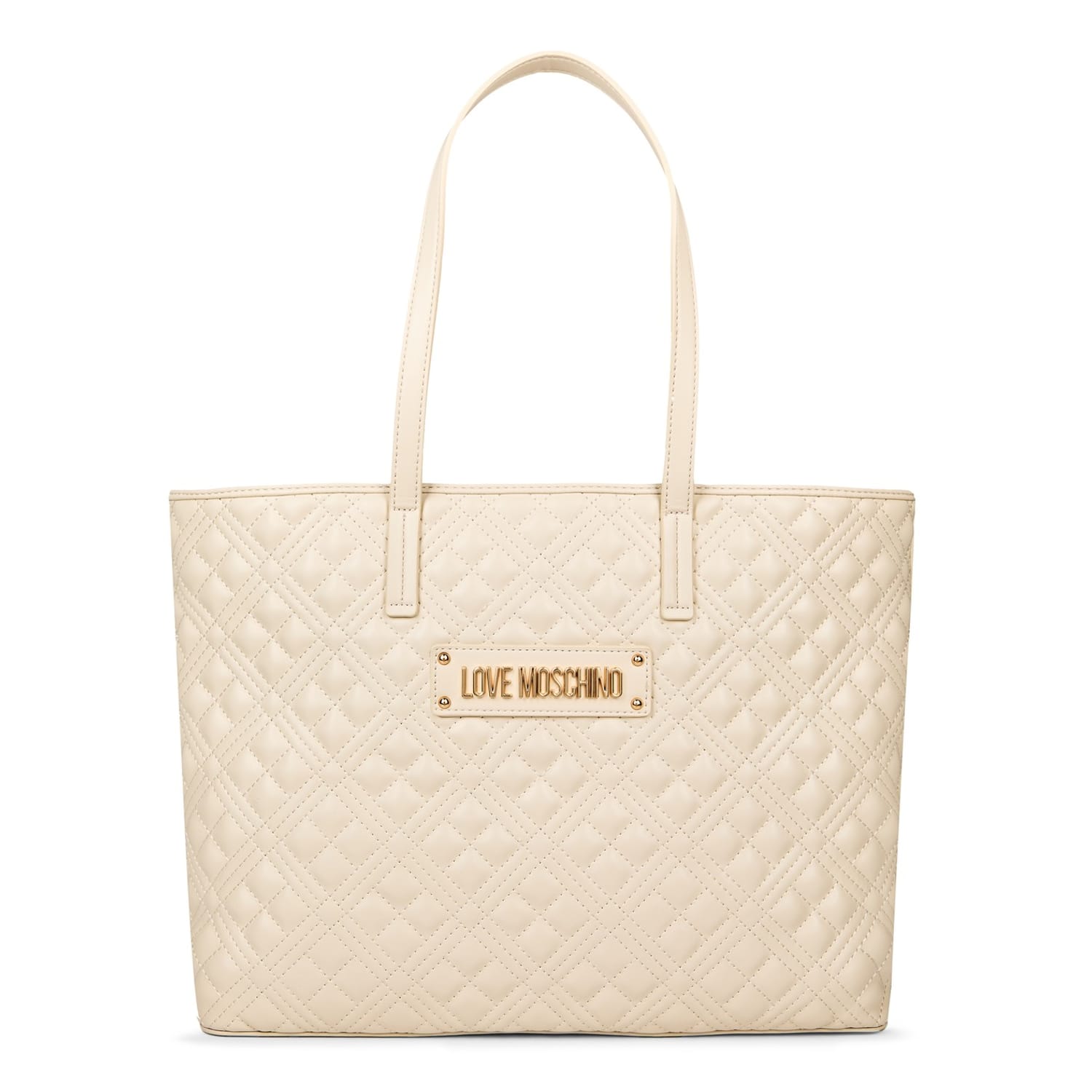- The gold-toned Love Moschino logo on the front adds a signature touch.