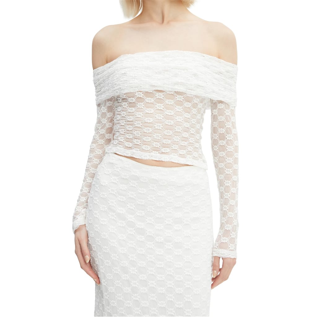 The Adoni Off The Shoulder Top is designed for a form fit with long sleeves, high hip length and lace detailing.