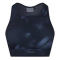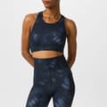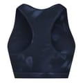 -- Cut in a cropped silhouette providing a medium level of support, the racer-back silhouette cut with a scoop neckline allows for a wide range of motion.