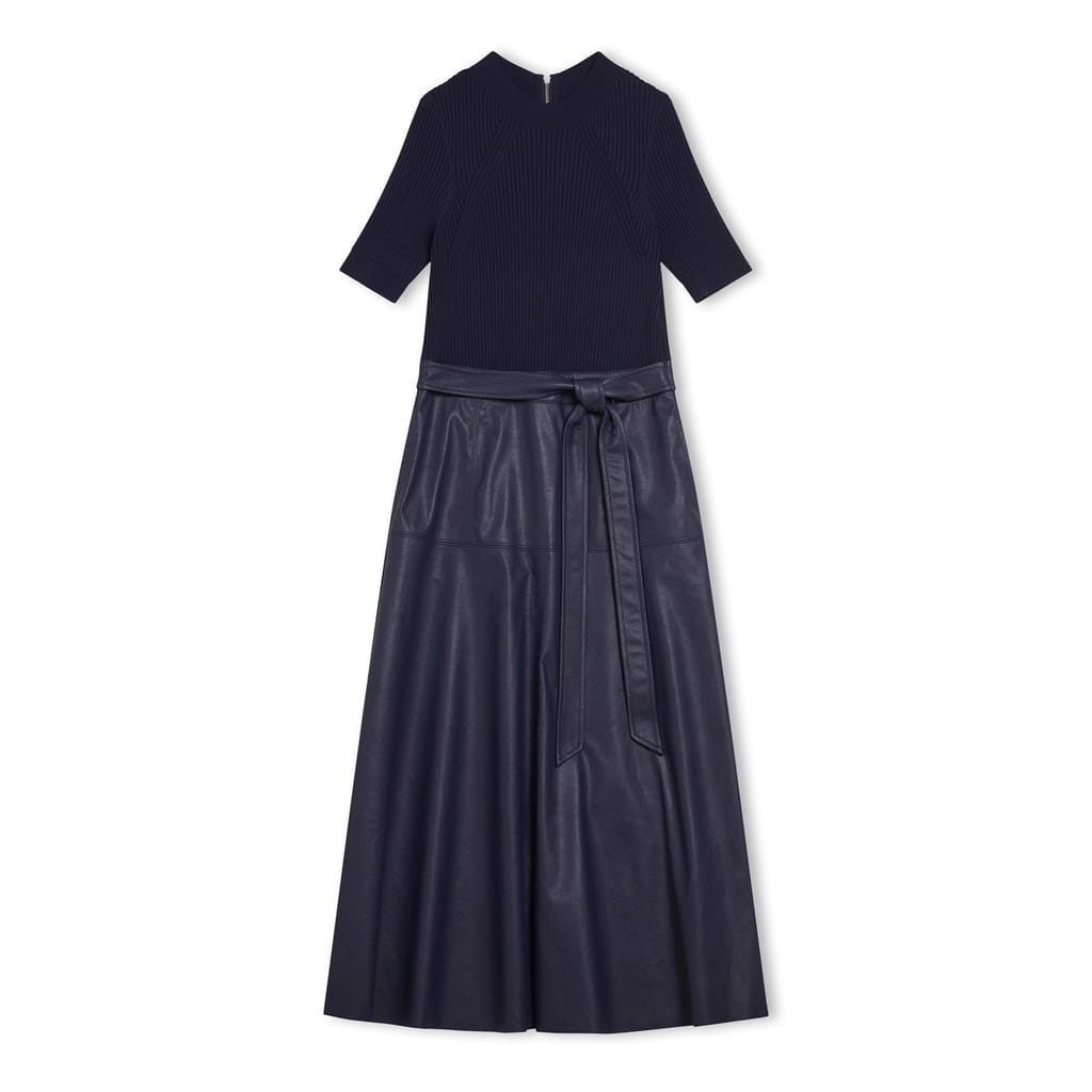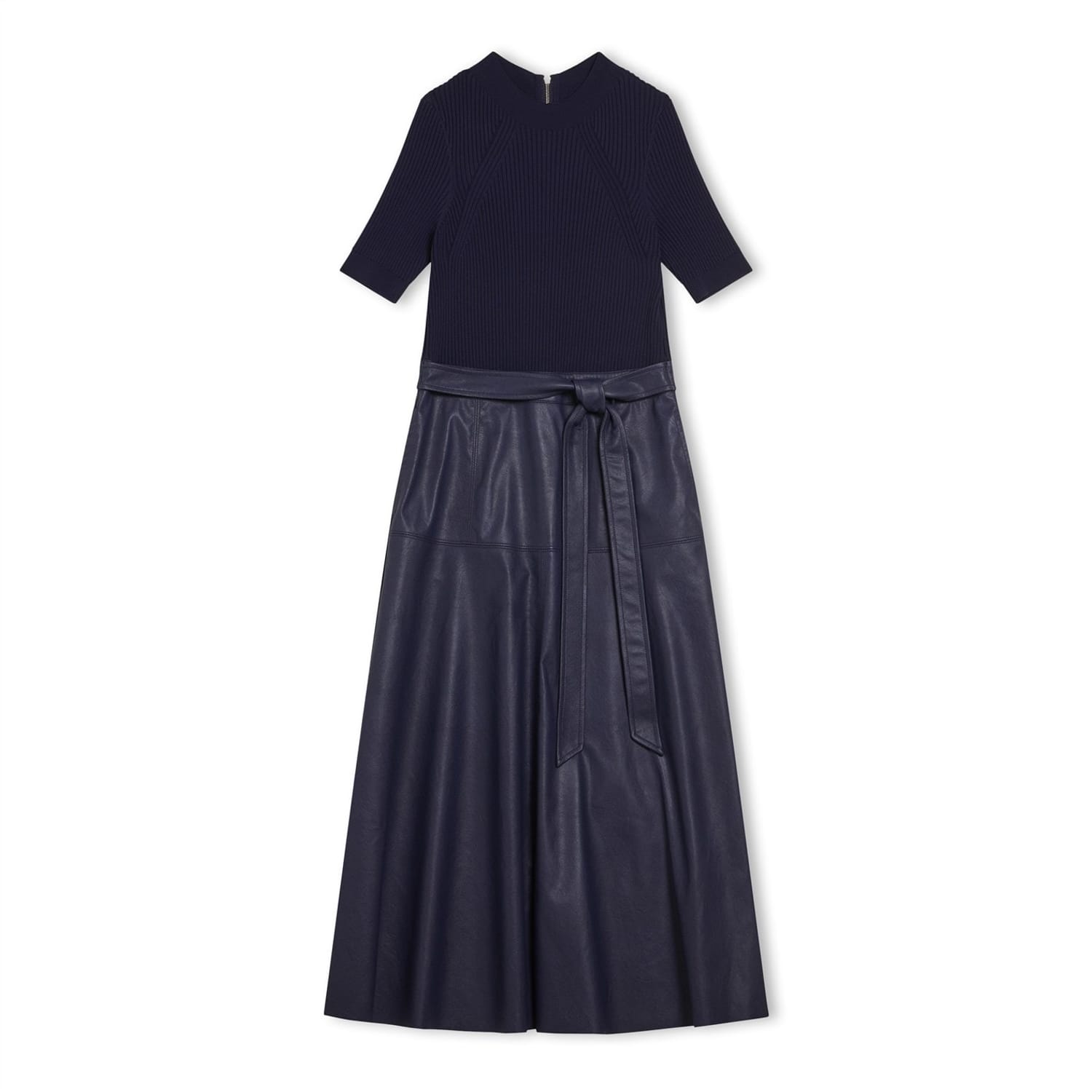 This Ted Baker midi dress features a classic crew neck and a ribbed pattern, offering a timeless appeal. Designed in an A-line style, it provides a flattering silhouette with a regular fit. The short sleeves add a touch of elegance, while the zipper closure ensures ease of wear. -