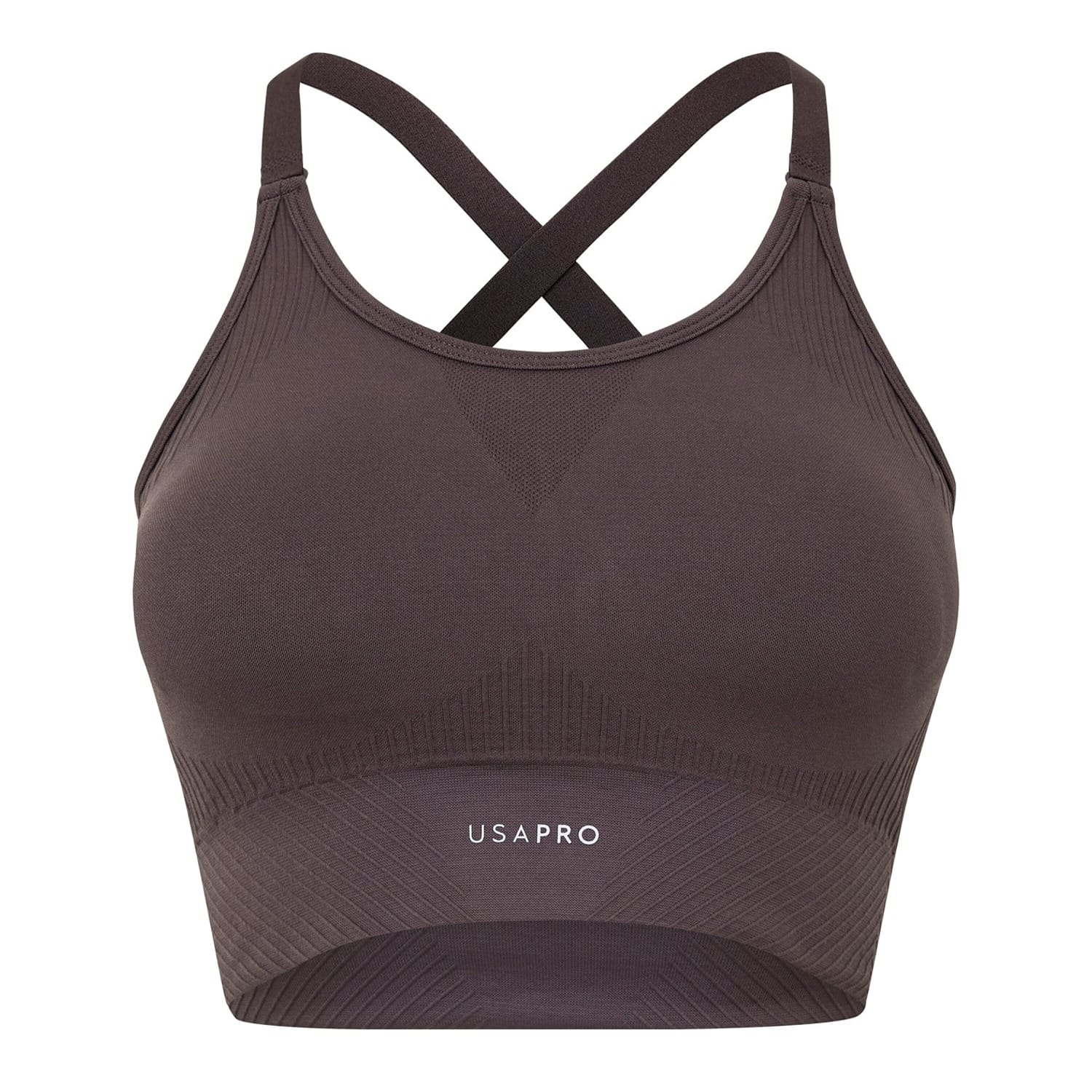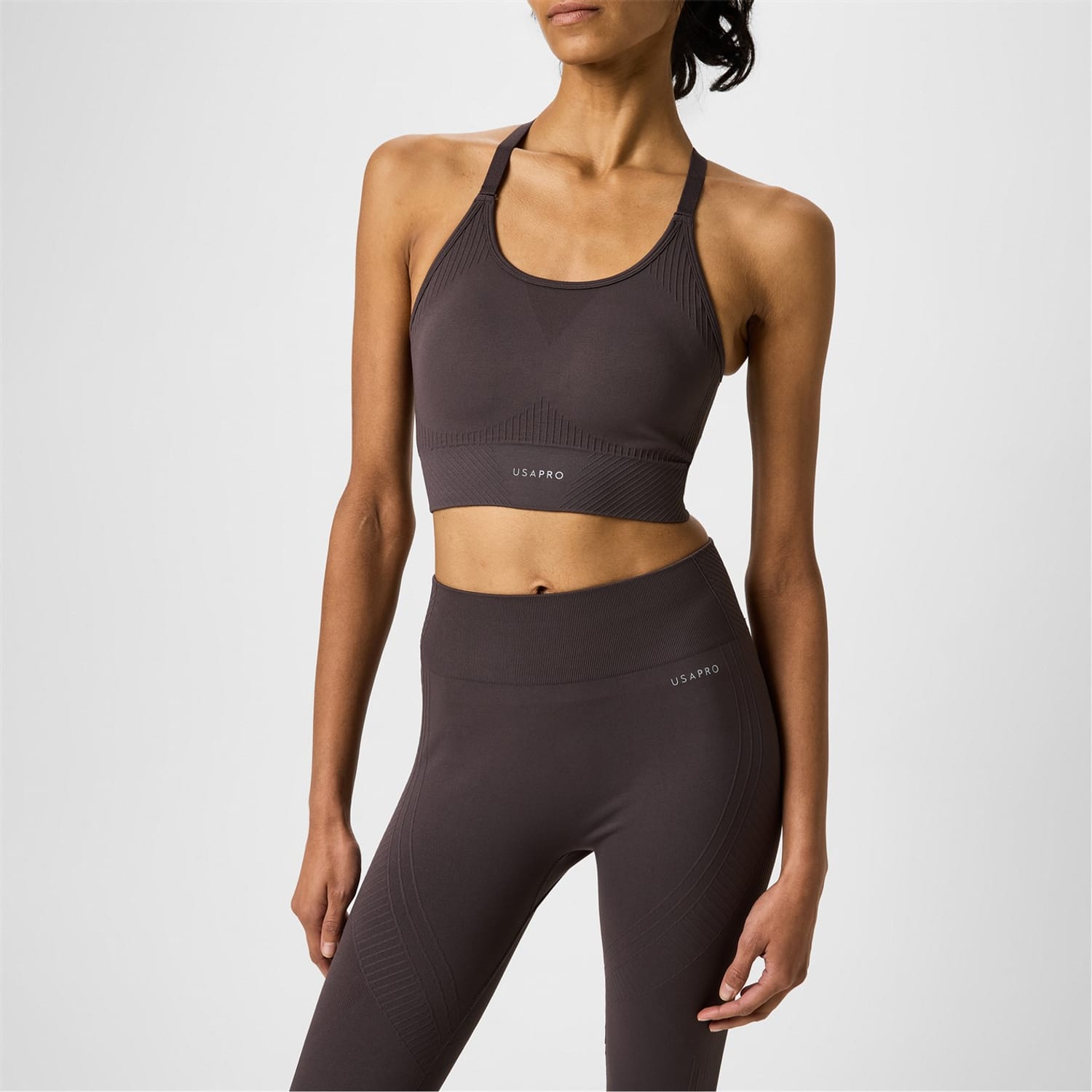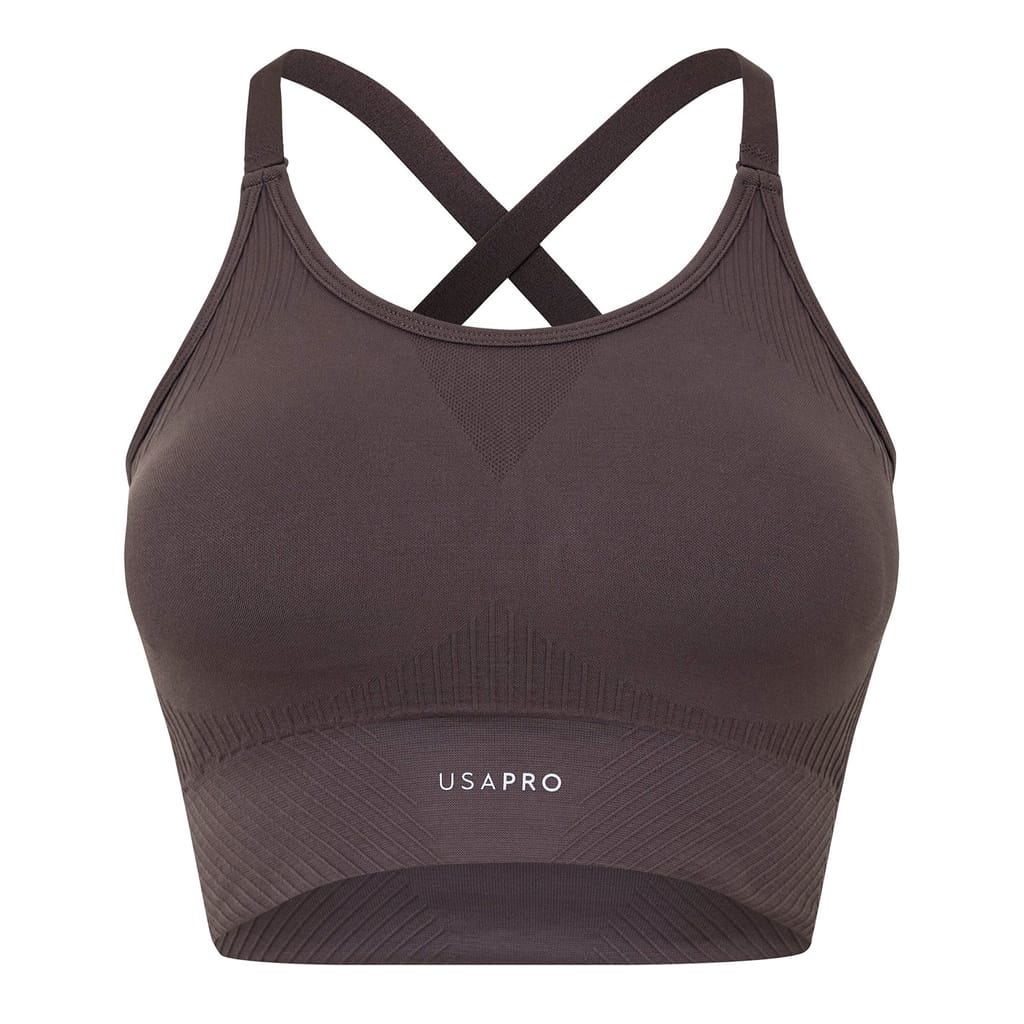 - Crafted from a blend of Nylon and Elastane for a stretchy fit, this cropped silhouette offers ultimate comfort during those intense workouts. Designed with seamless technology to ensure an irritation-free experience no matter your yoga position, the removable cups provide customisable support and shape, catering to your individual needs. Designed with the Pro Dry technology, this bra effectively wicks away sweat, keeping you dry and comfortable during intense workouts. Accompanied with adjustable cross-over straps to the rear for additional and customisable support, USA Pro branding showcases your dedication to performance and style.
