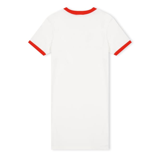 This Off White dress is a casual staple for juniors, featuring a solid pattern and a crew neck. The short sleeves and ribbed collar add a touch of classic style, while the regular fit ensures comfort. A logo embellishment completes the look, making it a versatile addition to any wardrobe. -