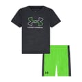This Under Armour infant top short set is perfect for active little ones. The 2-pack set features athletic t-shirts with a heathered pattern and a crew neck design. Each short-sleeve t-shirt is crafted for training, adorned with a large genie graphic and the iconic logo. Ideal for activewear, these plain-sleeve tops offer comfort and style for your child's adventures. -