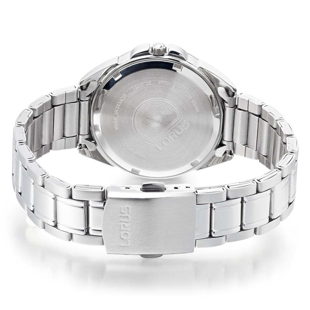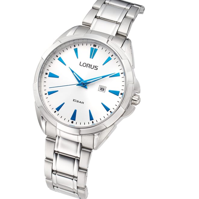 Discover the elegance of Lorus with this wrist watch, featuring a classic analogue display. The watch boasts a sleek white dial, perfectly complemented by a durable steel bracelet strap. Designed for reliability, it offers water resistance up to 100m, making it a versatile choice for various settings. This timepiece combines functionality with timeless style. -