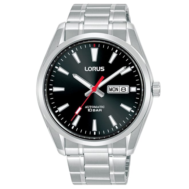 Lorus presents a sophisticated wrist watch featuring an analogue display. This timepiece boasts a sleek black dial complemented by a durable steel bracelet strap. Designed for reliability, it offers water resistance up to 100m, making it a practical choice for various settings. The watch's elegant design and robust construction ensure it stands out in any collection. -