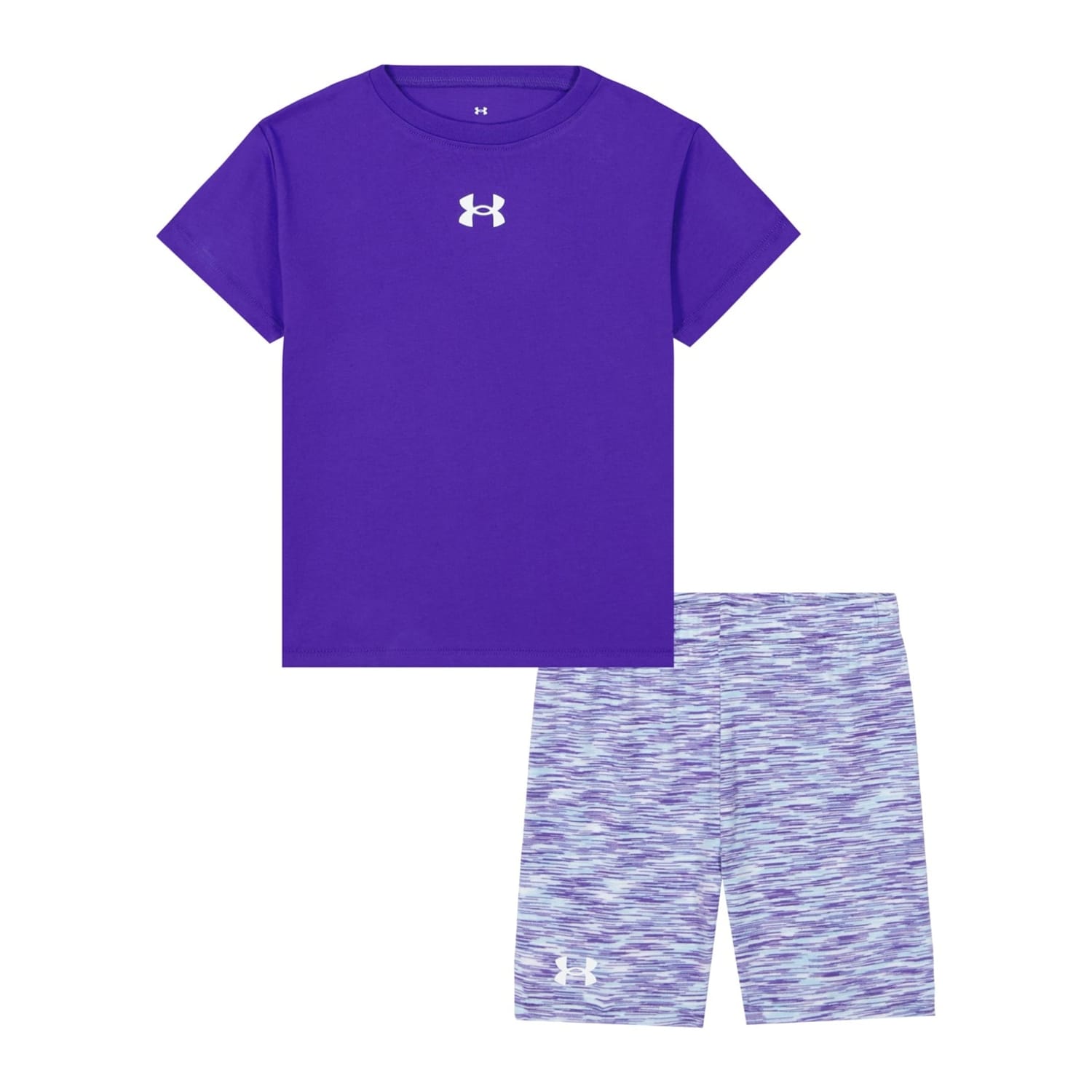 This Under Armour top short set is perfect for activewear enthusiasts. The set includes a space dye t-shirt with a crew neck and plain short sleeves, complemented by athletic shorts. The t-shirt features a logo embellishment, adding a touch of brand identity. Ideal for casual style, the bermuda shorts offer comfort and functionality, making this set a versatile addition to your wardrobe. -