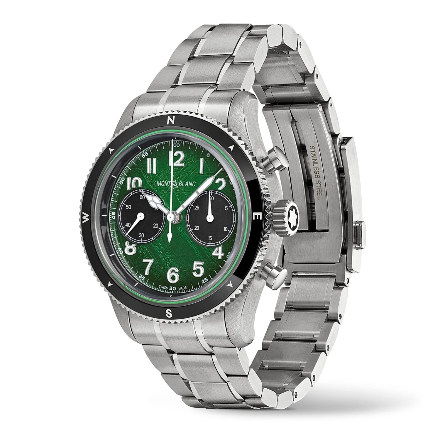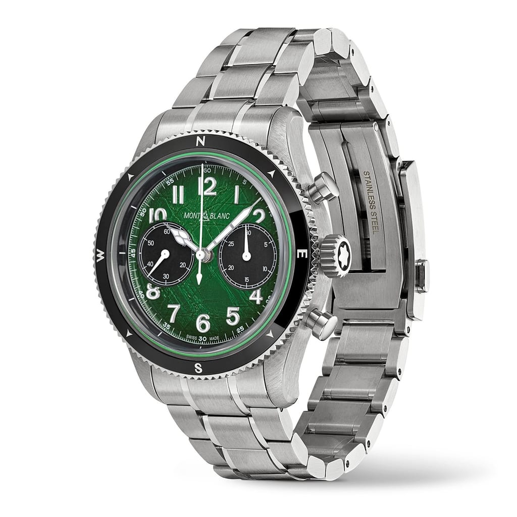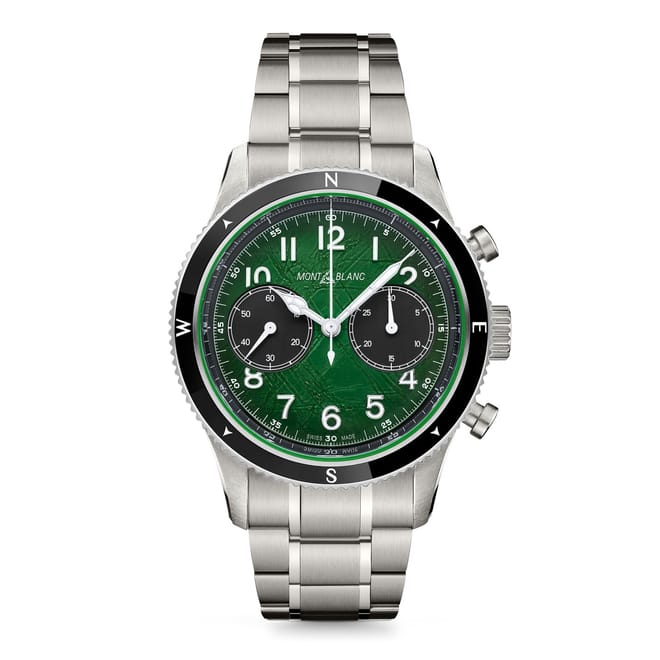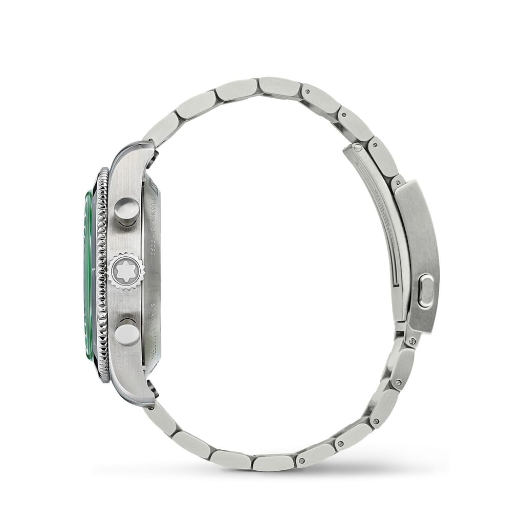 Discover the elegance of Montblanc with this exquisite wrist watch. Featuring a striking green dial, this analogue timepiece is a perfect blend of style and functionality. The steel bracelet strap adds a touch of sophistication, making it a timeless addition to any collection. Ideal for those who appreciate refined craftsmanship and classic design. -